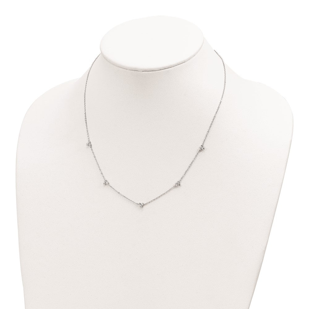 Sterling Silver Rhodium-plated Polished CZ 5 Stations Necklace