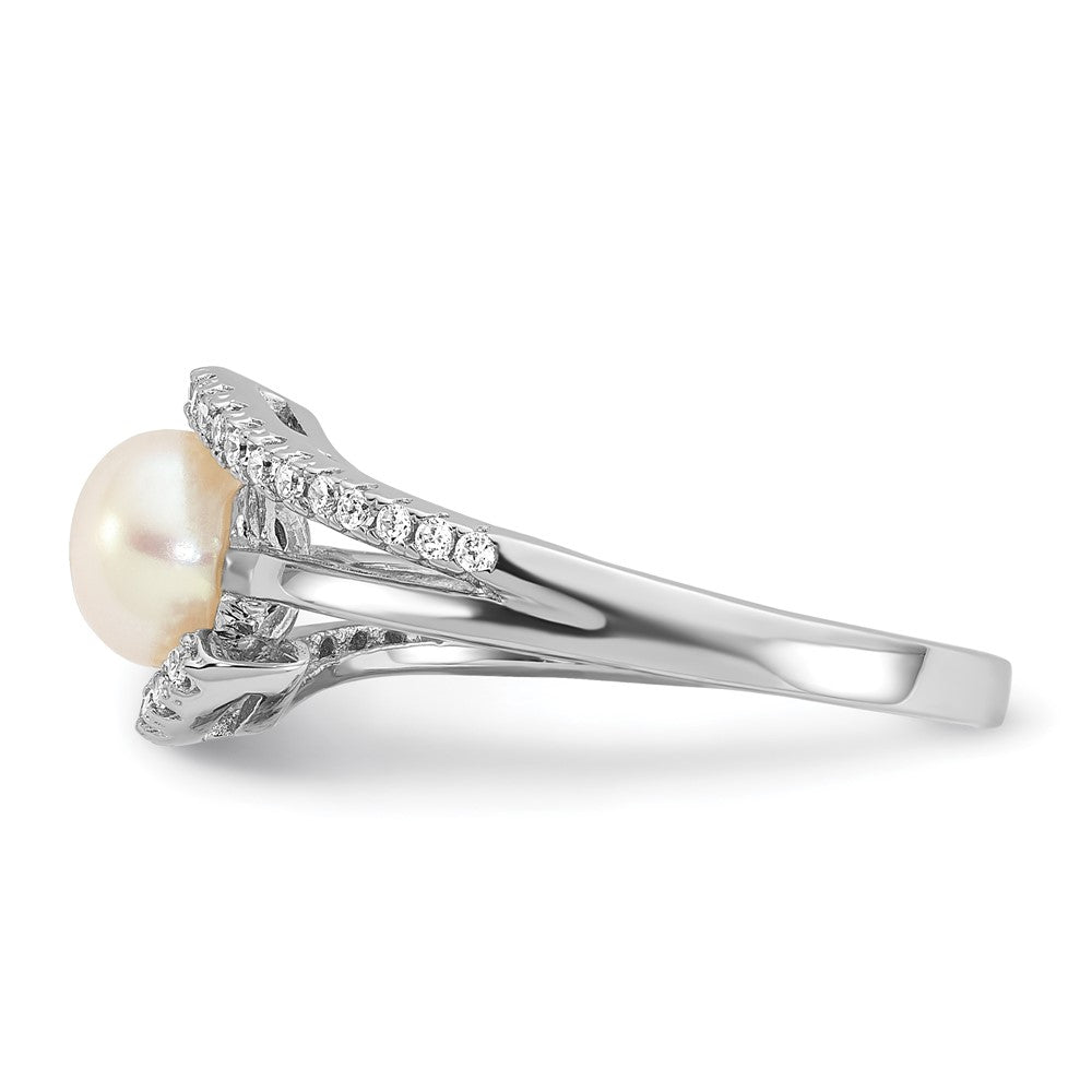 Sterling Silver Rhodium-plated Polished CZ and 6-7mm Freshwater Cultured Pearl Size 7 Ring