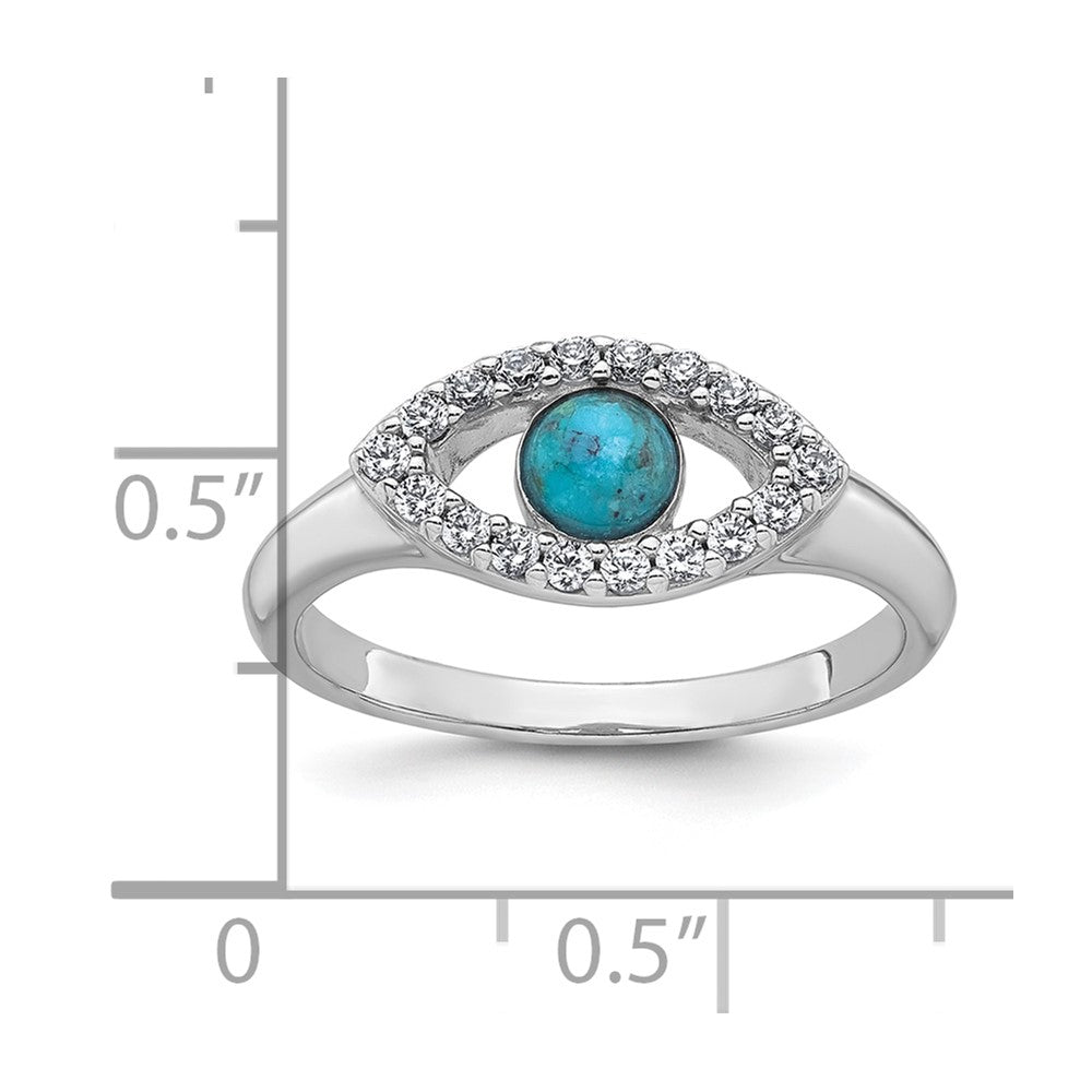 Sterling Silver Rhodium-plated Polished CZ and Compressed Turquoise Cabochon Evil Eye Size 7 Ring