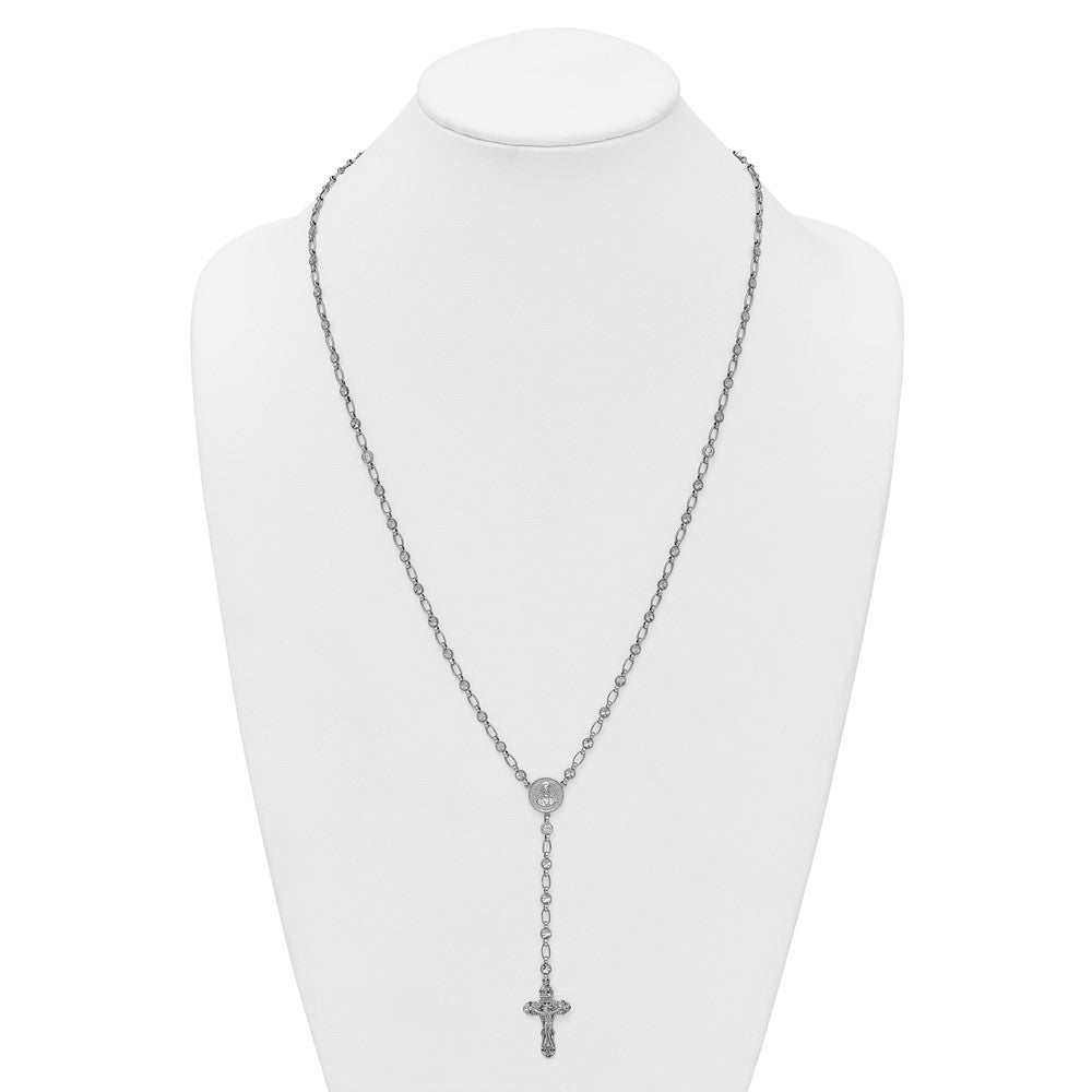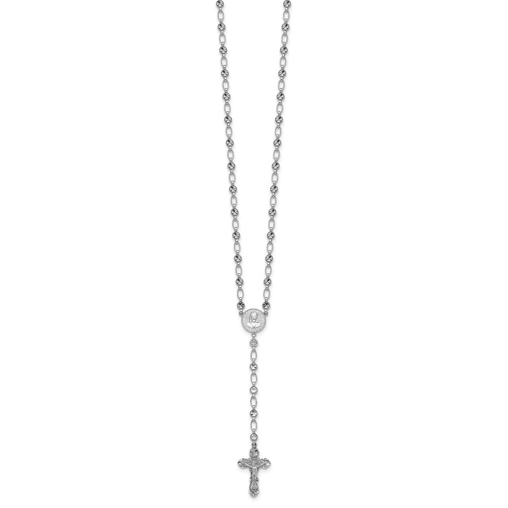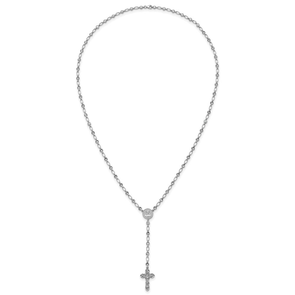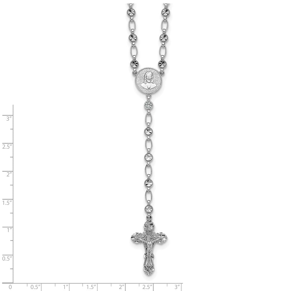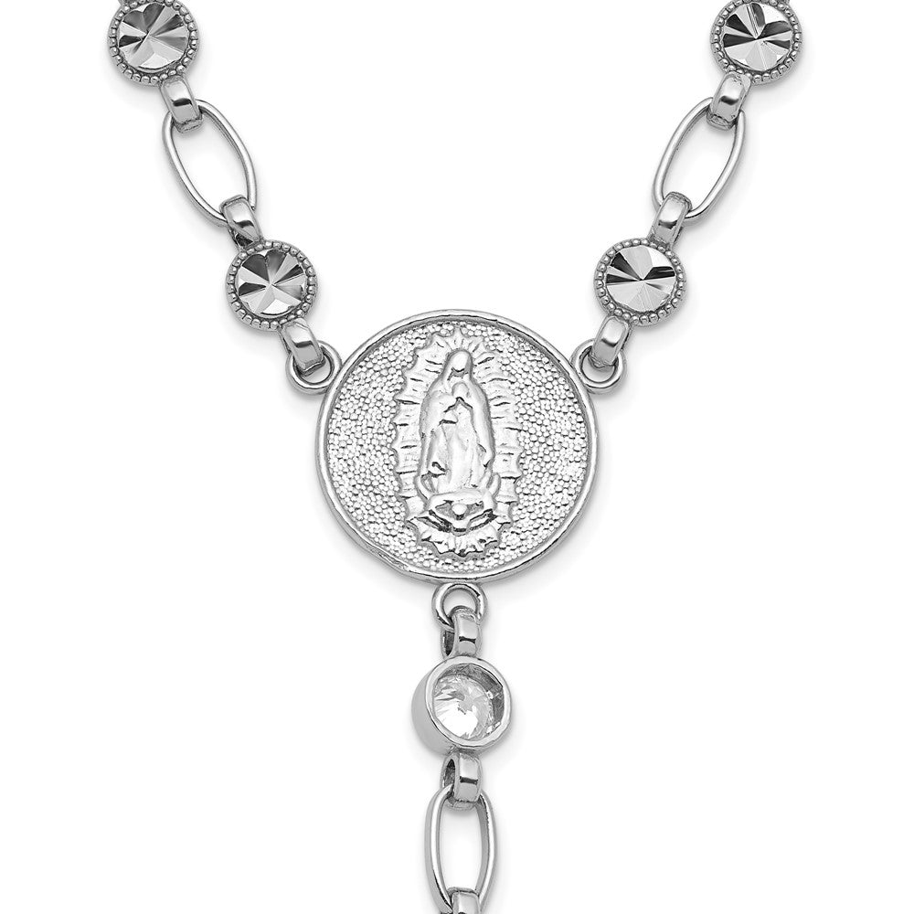 Sterling Silver Rhodium-plated Polished CZ and Diamond-cut Circles 25. Rosary Necklace