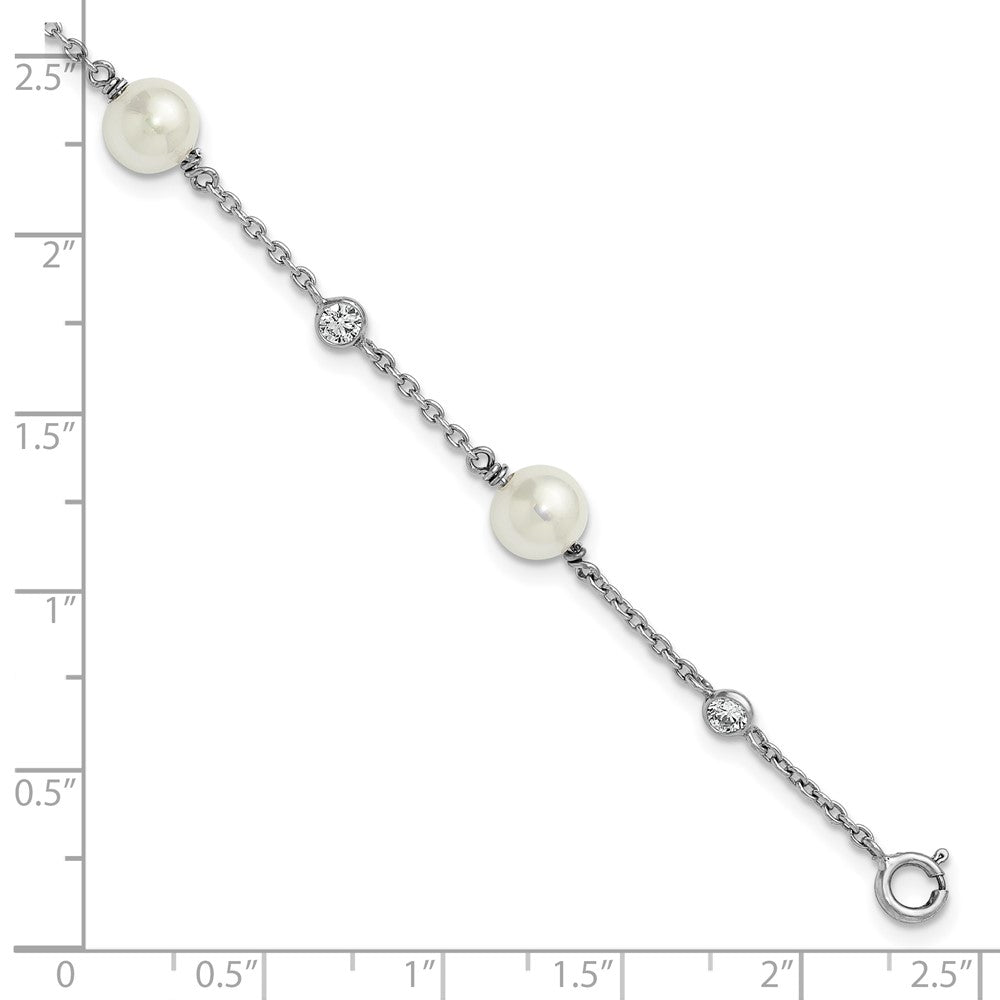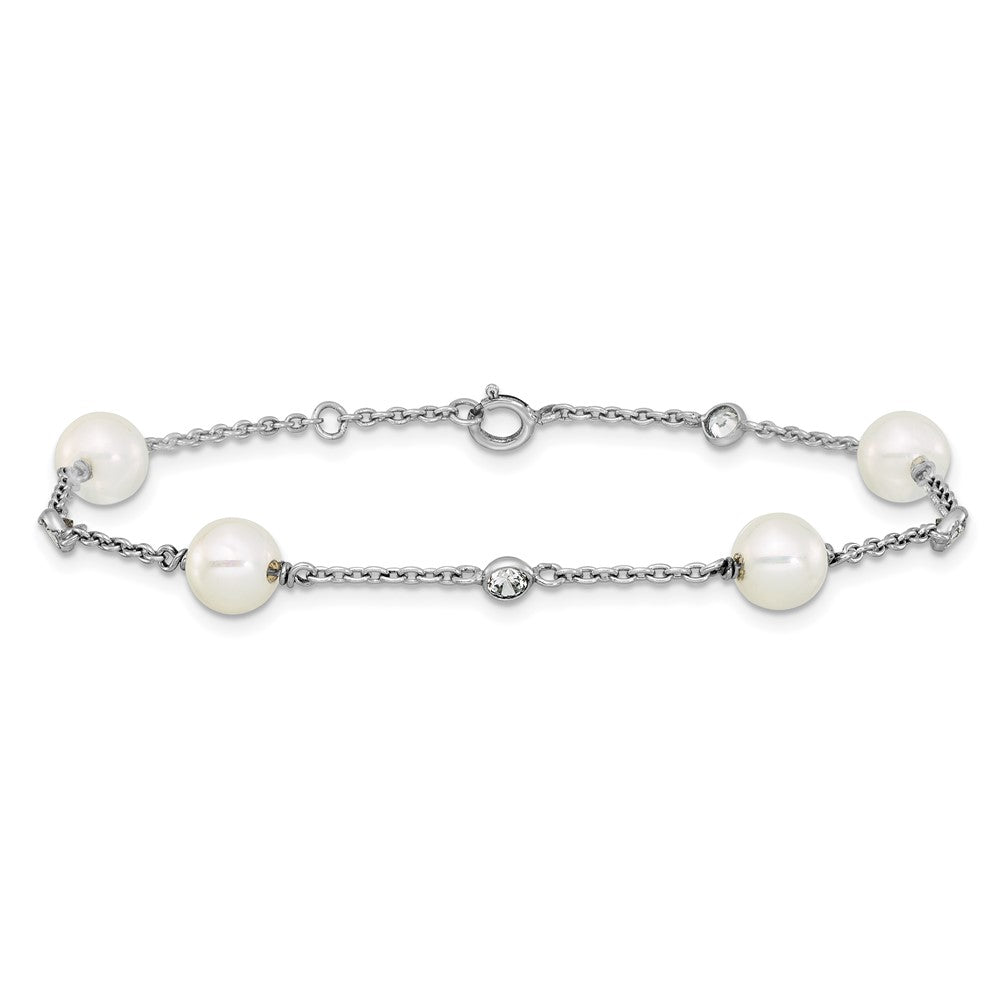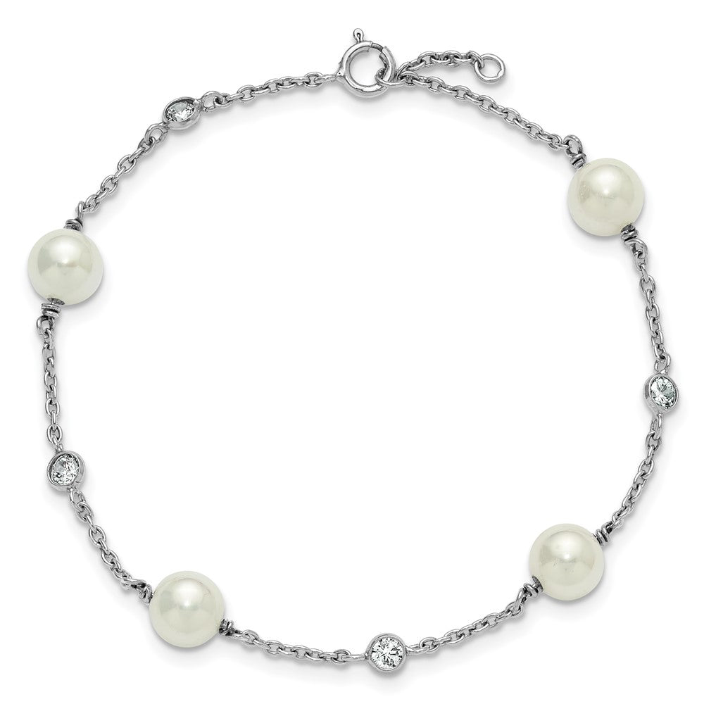 Sterling Silver Rhodium-plated Polished CZ and Shell Pearl 8-Station with 0. Extender Bracelet