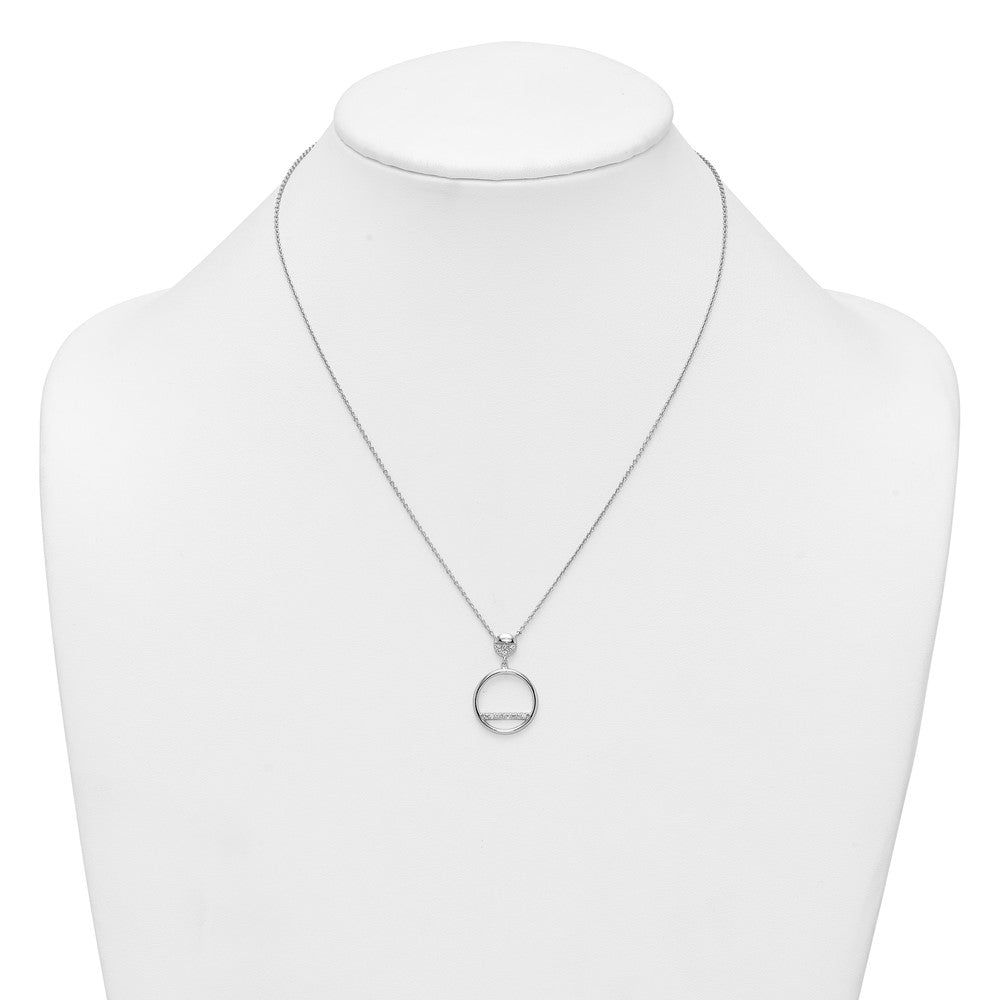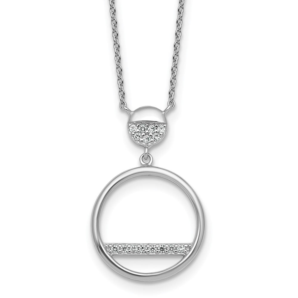Sterling Silver Rhodium-plated Polished CZ Divided Circle 17. Necklace