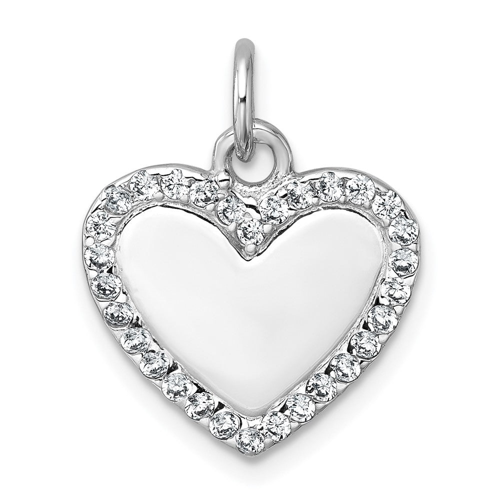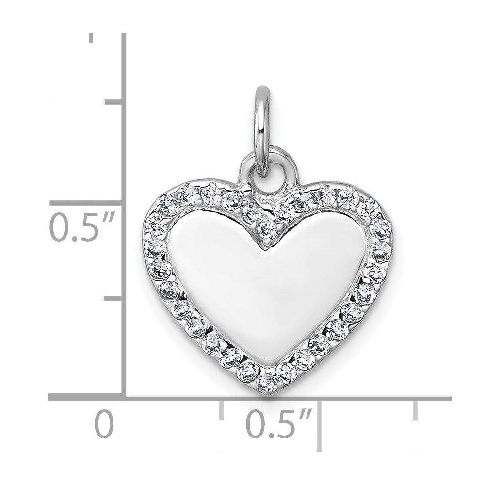 Sterling Silver Rhodium-plated Polished CZ Engraveable Heart Pendant