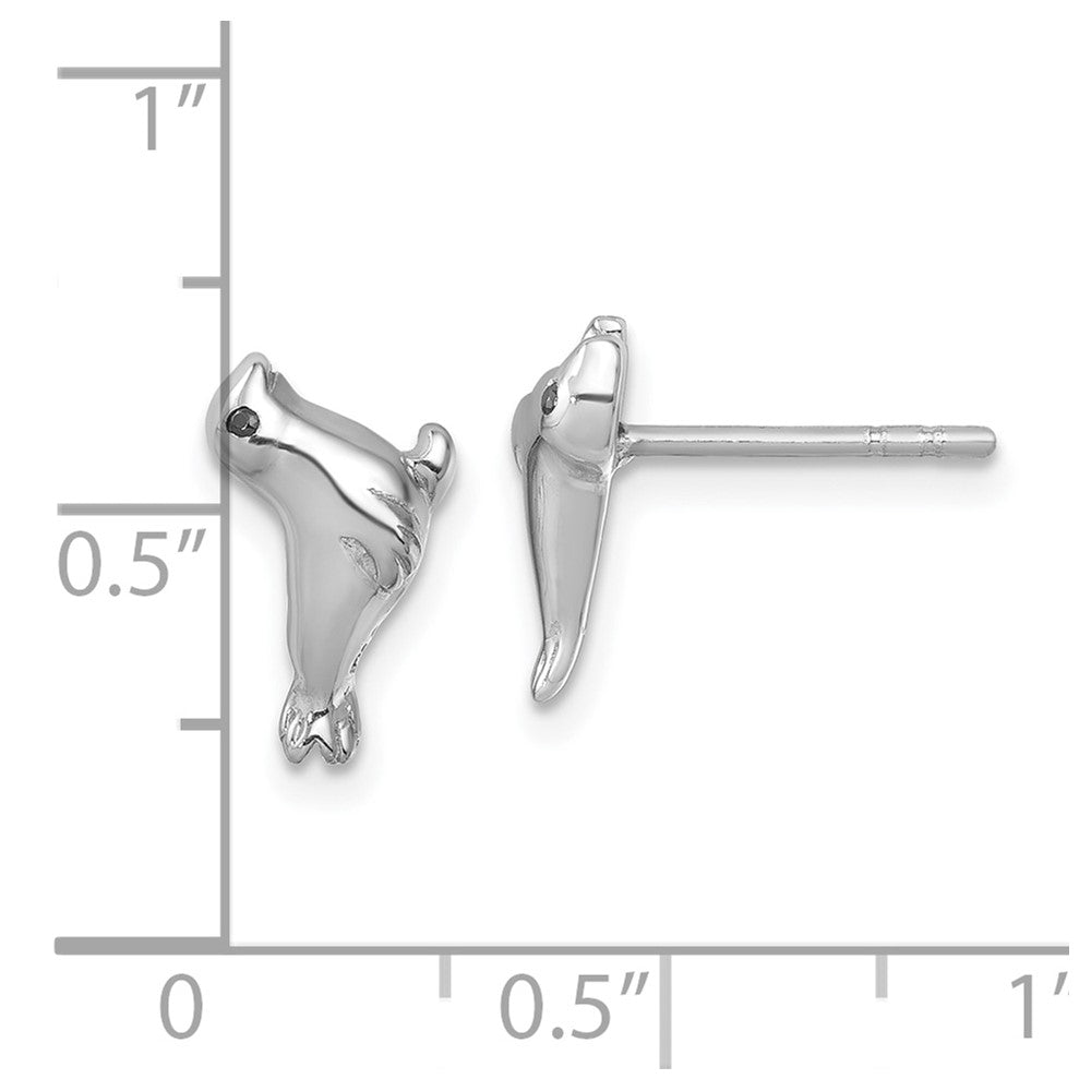 Sterling Silver Rhodium-plated Polished CZ Eye Sea Lion Post Earrings