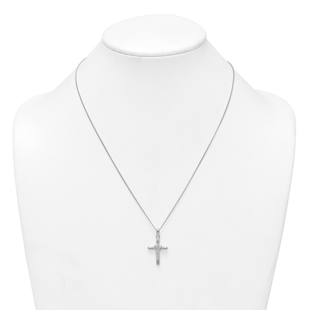 Sterling Silver Rhodium-plated Polished CZ Heart Cross with Extender Necklace