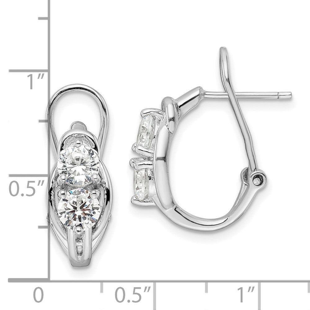 Sterling Silver Rhodium-plated Polished CZ Omega Back J-Hoop Earrings