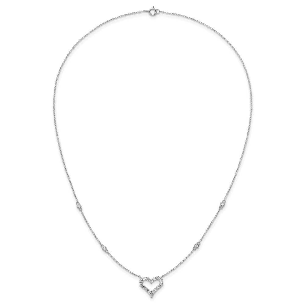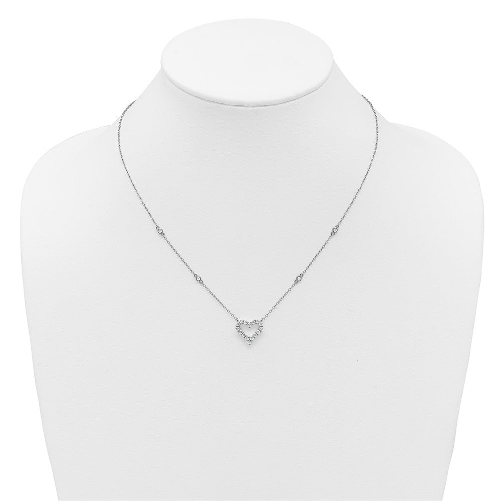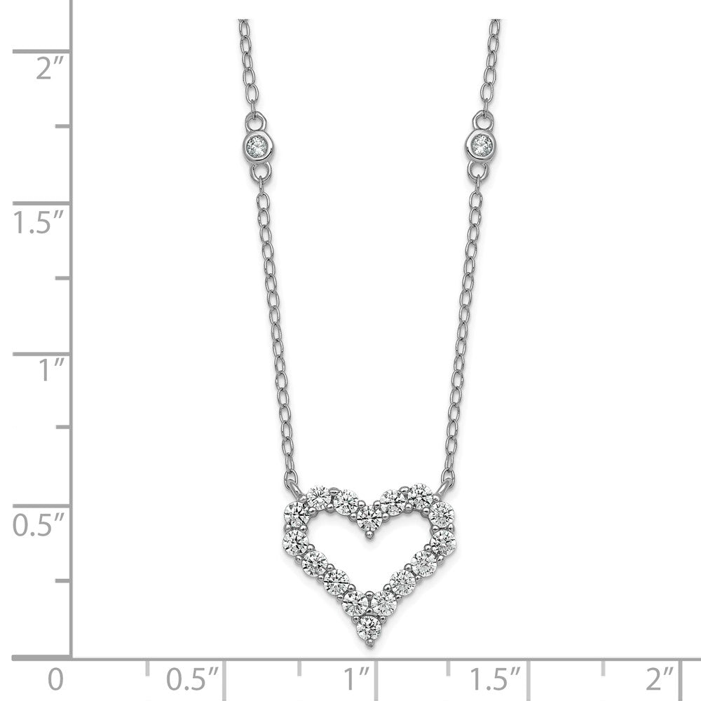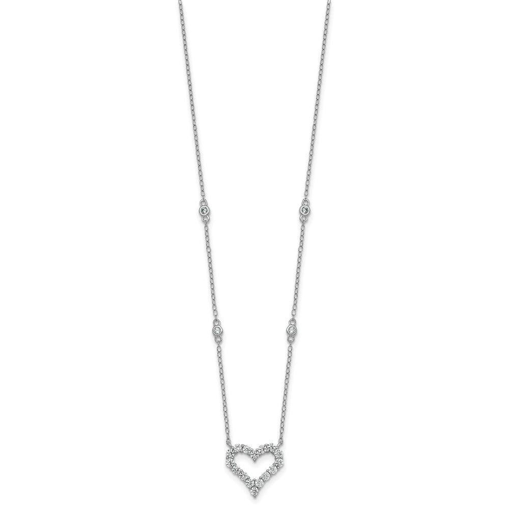Sterling Silver Rhodium-plated Polished CZ Open Heart Necklace