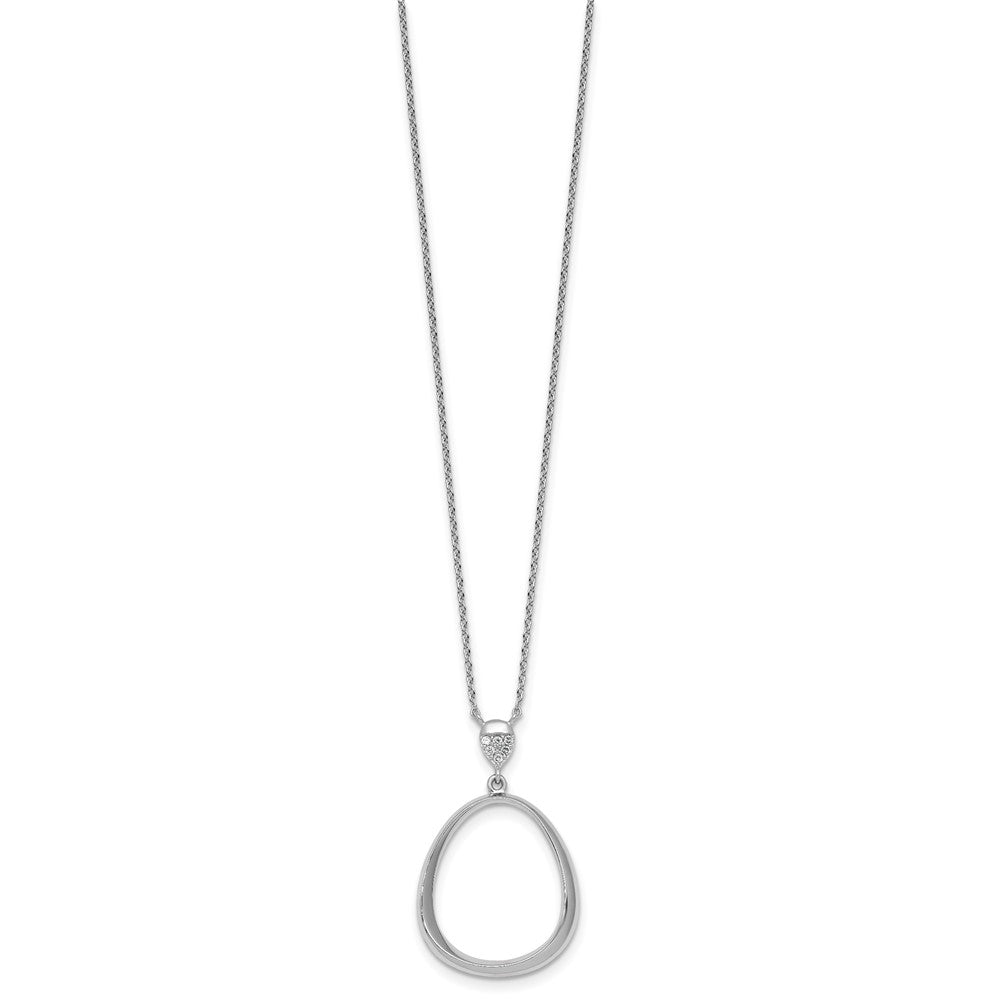 Sterling Silver Rhodium-plated Polished CZ Rounded Teardrop 17. Necklace