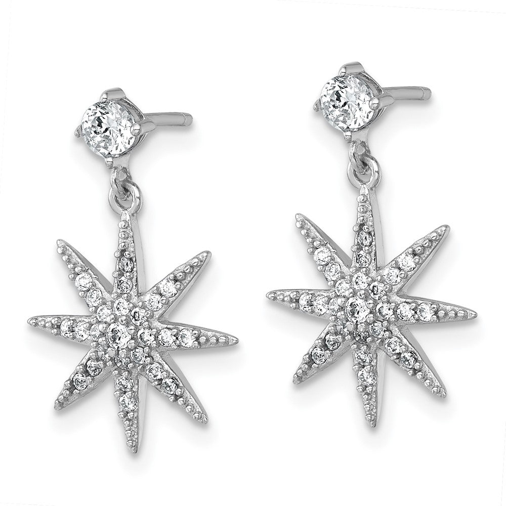 Sterling Silver Rhodium-plated Polished CZ Star Post Dangle Earrings