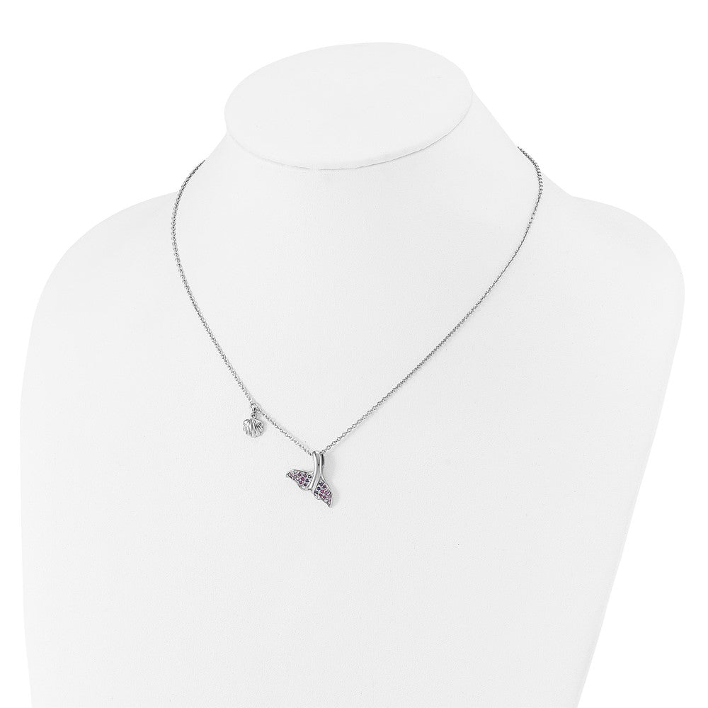 Sterling Silver Rhodium-plated Polished CZ Whale Tail 17.75in Necklace