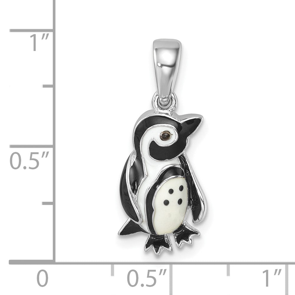 Sterling Silver Rhodium-plated Polished Enamel Penguin Pendant