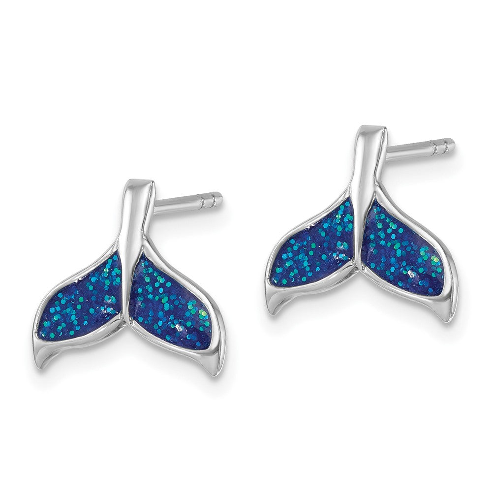 Sterling Silver Rhodium-plated Polished Enameled Whale's Tail Dangle Earrings
