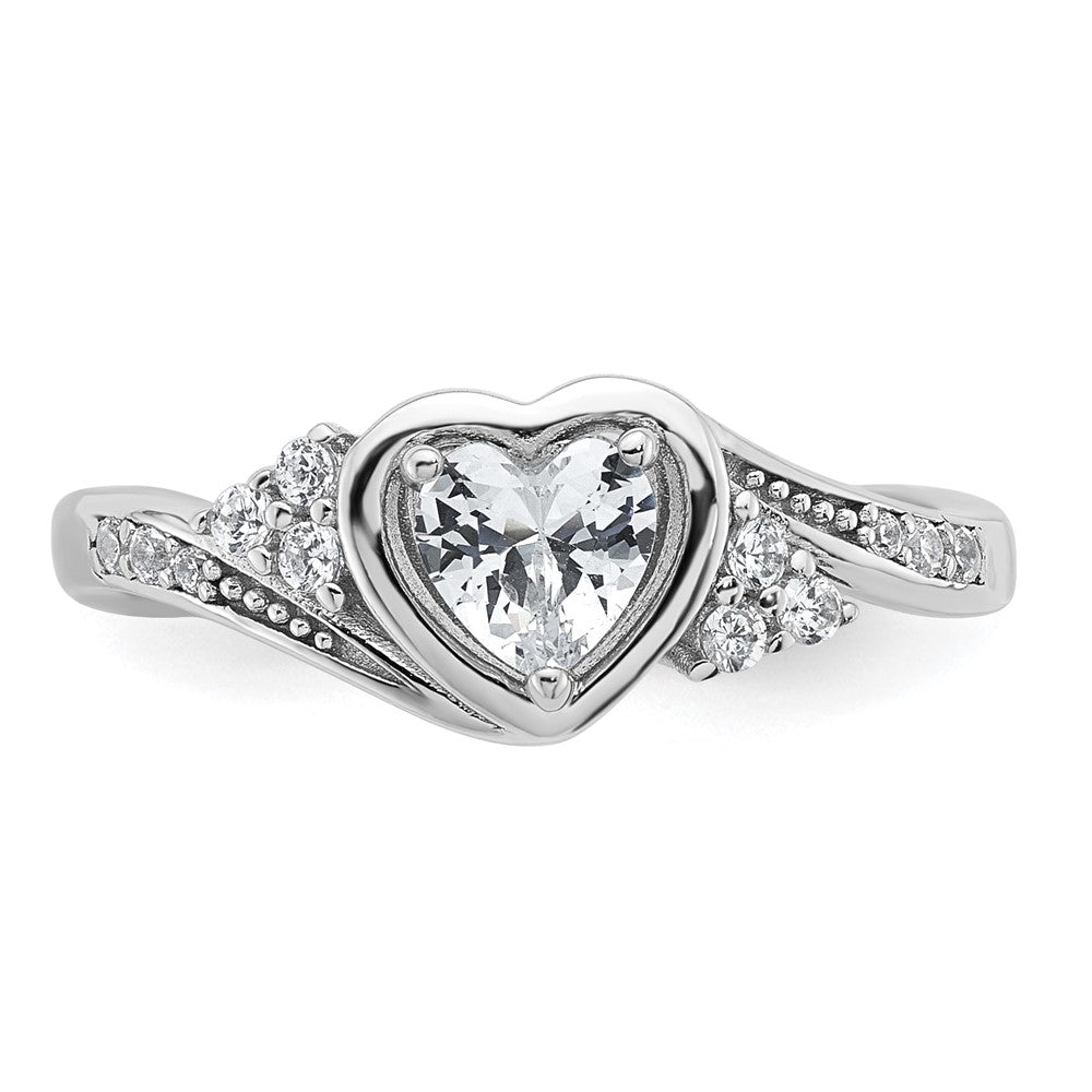 Sterling Silver Rhodium-plated Polished Fancy CZ Center Heart Size 8 Ring
