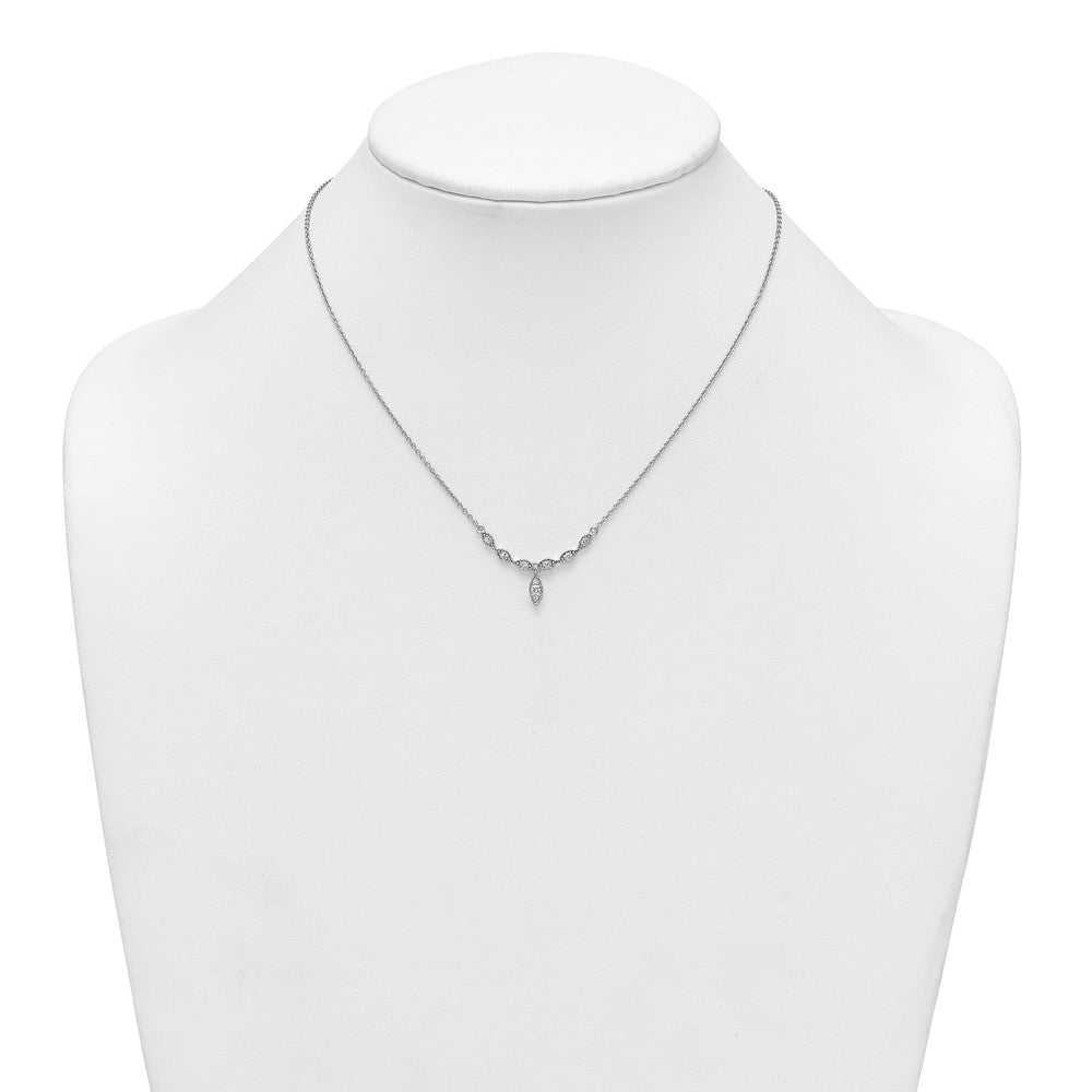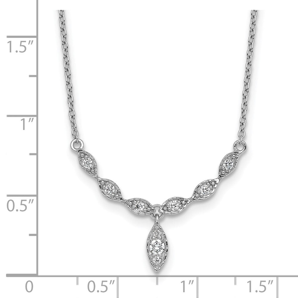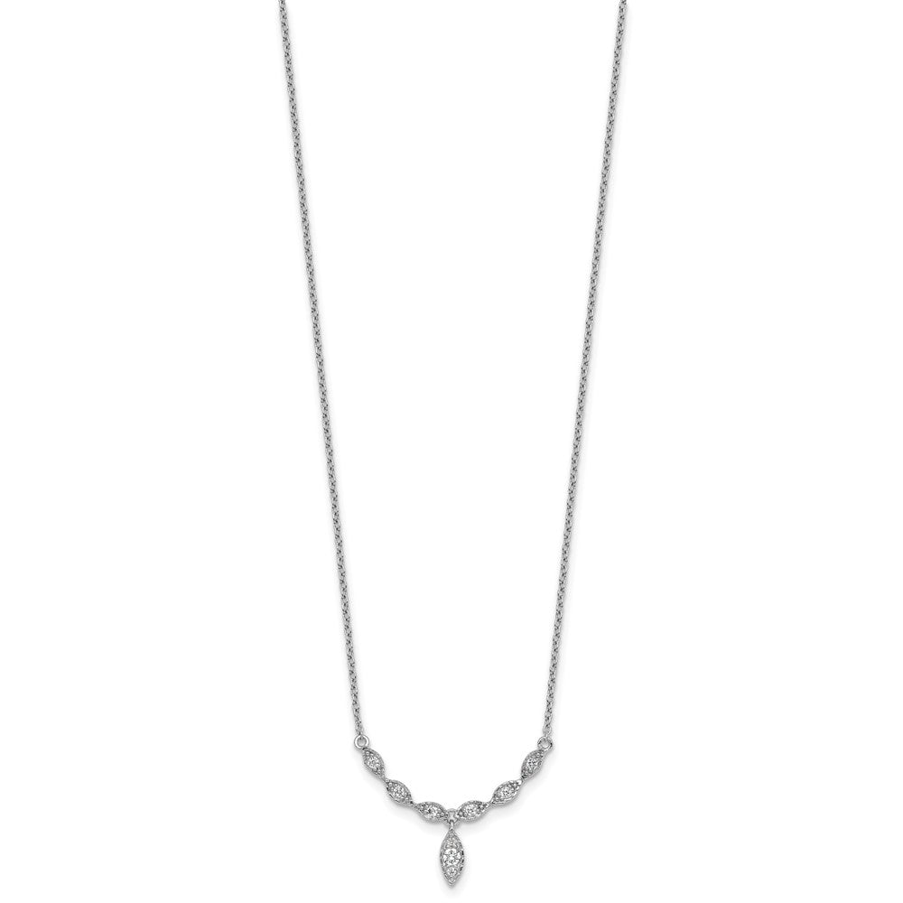 Sterling Silver Rhodium-plated Polished Fancy CZ Drop 16. with Extension Necklace