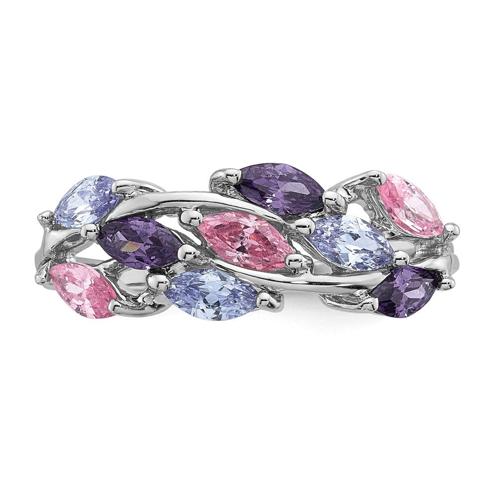 Sterling Silver Rhodium-plated Polished Fancy Pink and Purple Marquise CZ Size 8 Ring