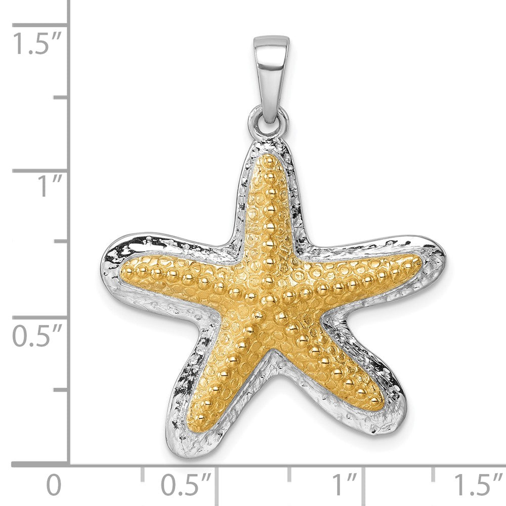 Sterling Silver Rhodium-plated Polished Gold-tone Star Fish Pendant