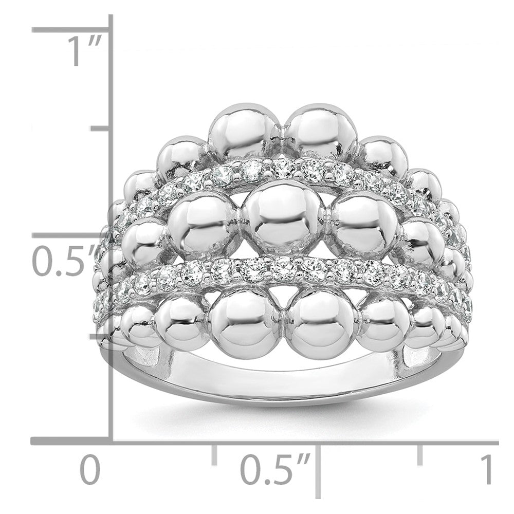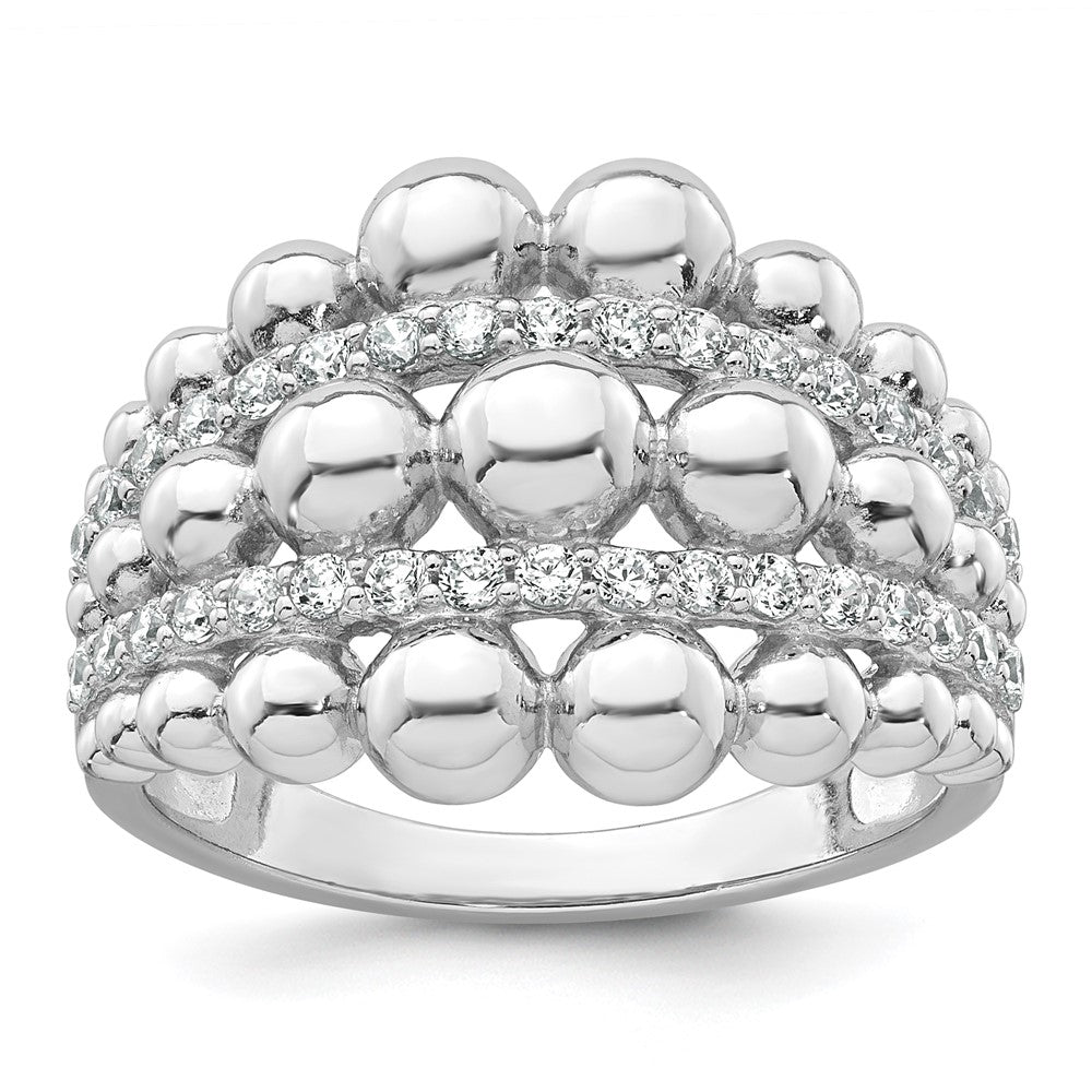 Sterling Silver Rhodium-plated Polished Graduated Beaded Fancy CZ Size 7 Ring