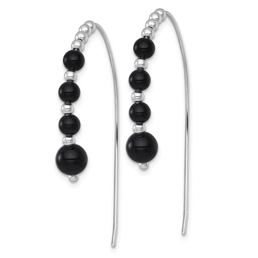 Sterling Silver Rhodium-plated Polished Graduated Onyx Beaded Threader Earrings