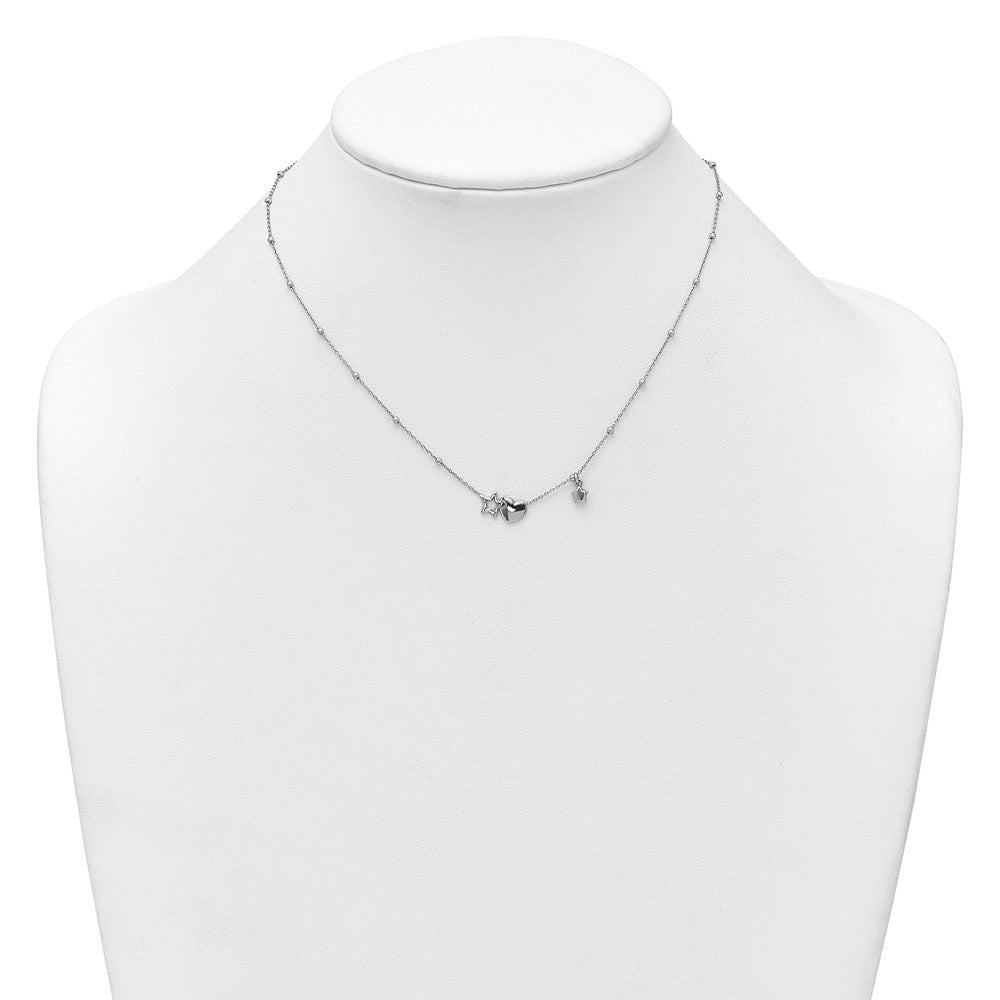 Sterling Silver Rhodium-plated Polished Heart and Stars with Extender Necklace