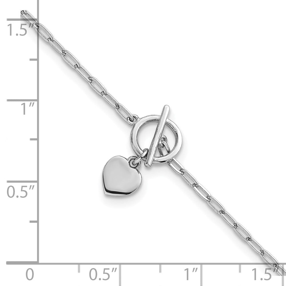 Sterling Silver Rhodium-plated Polished Heart Dangle Paperclip Link 6. with Extension Bracelet