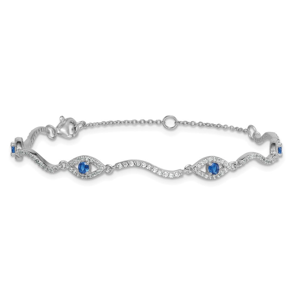 Sterling Silver Rhodium-plated Polished Lab Created Spinel and CZ Evil Eye with Extension Bracelet