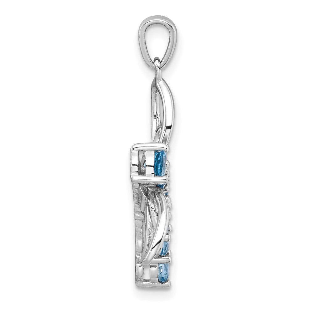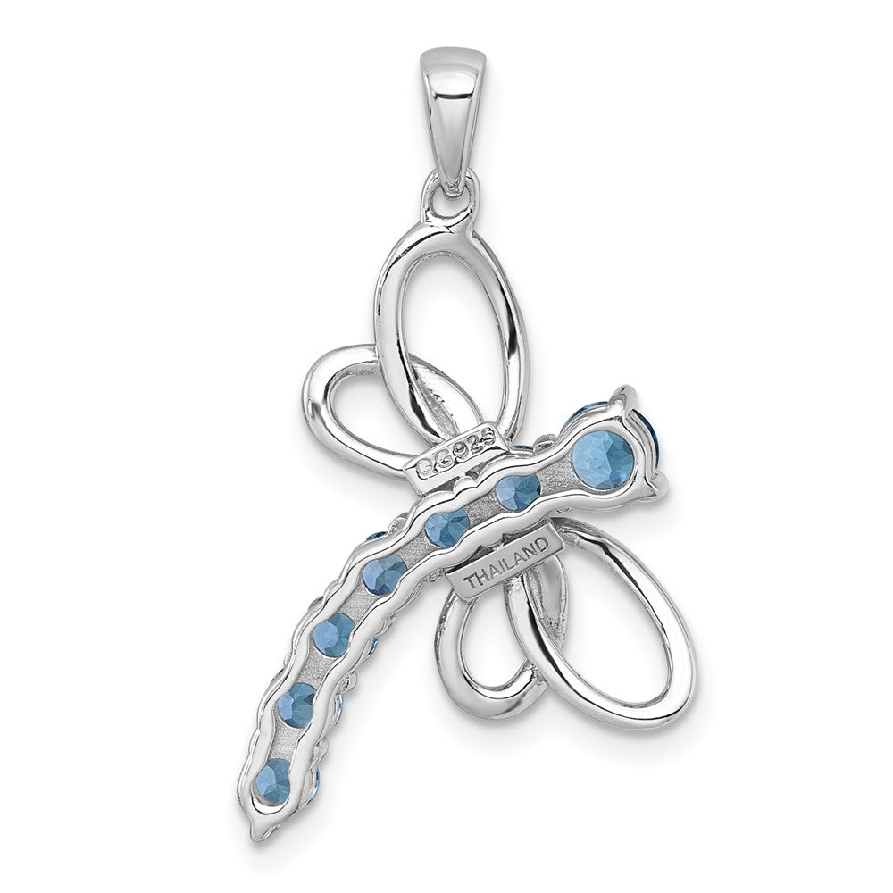 Sterling Silver Rhodium-plated Polished Light Swiss Blue Topaz Dragonfly Pendant