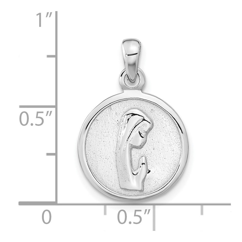 Sterling Silver Rhodium-plated Polished Mary Praying Pendant