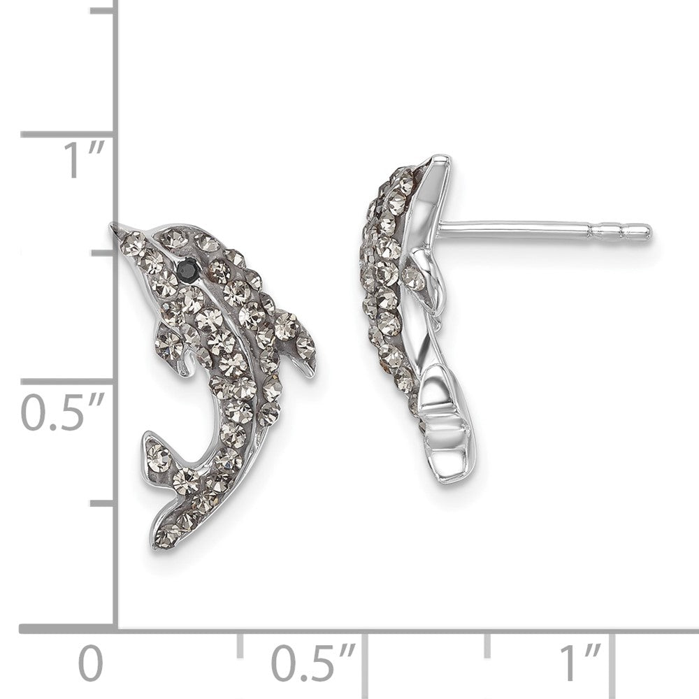 Sterling Silver Rhodium-plated Polished Pale Blue Crystal Dolphin Post Earrings