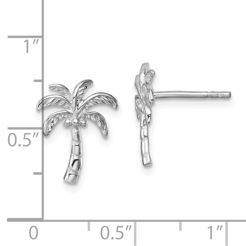 Sterling Silver Rhodium-plated Polished Palm Tree Post Earring