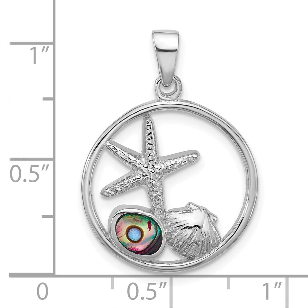 Sterling Silver Rhodium-plated Polished Paua Shell Starfish and Shell Pendant