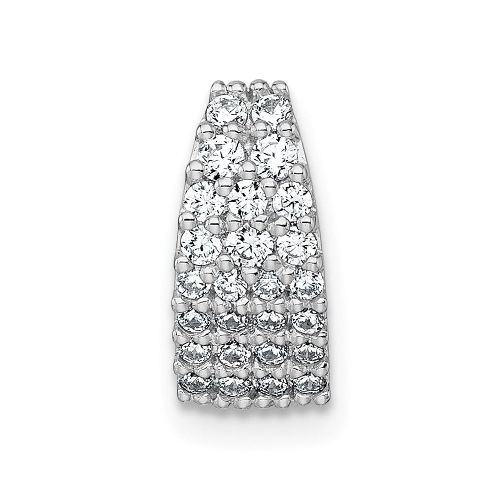 Sterling Silver Rhodium-plated Polished Pave CZ Curved and Tapered Chain Slide Pendant