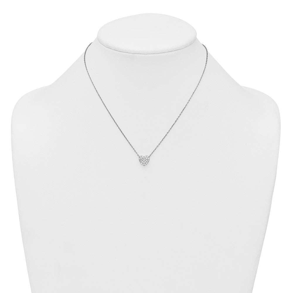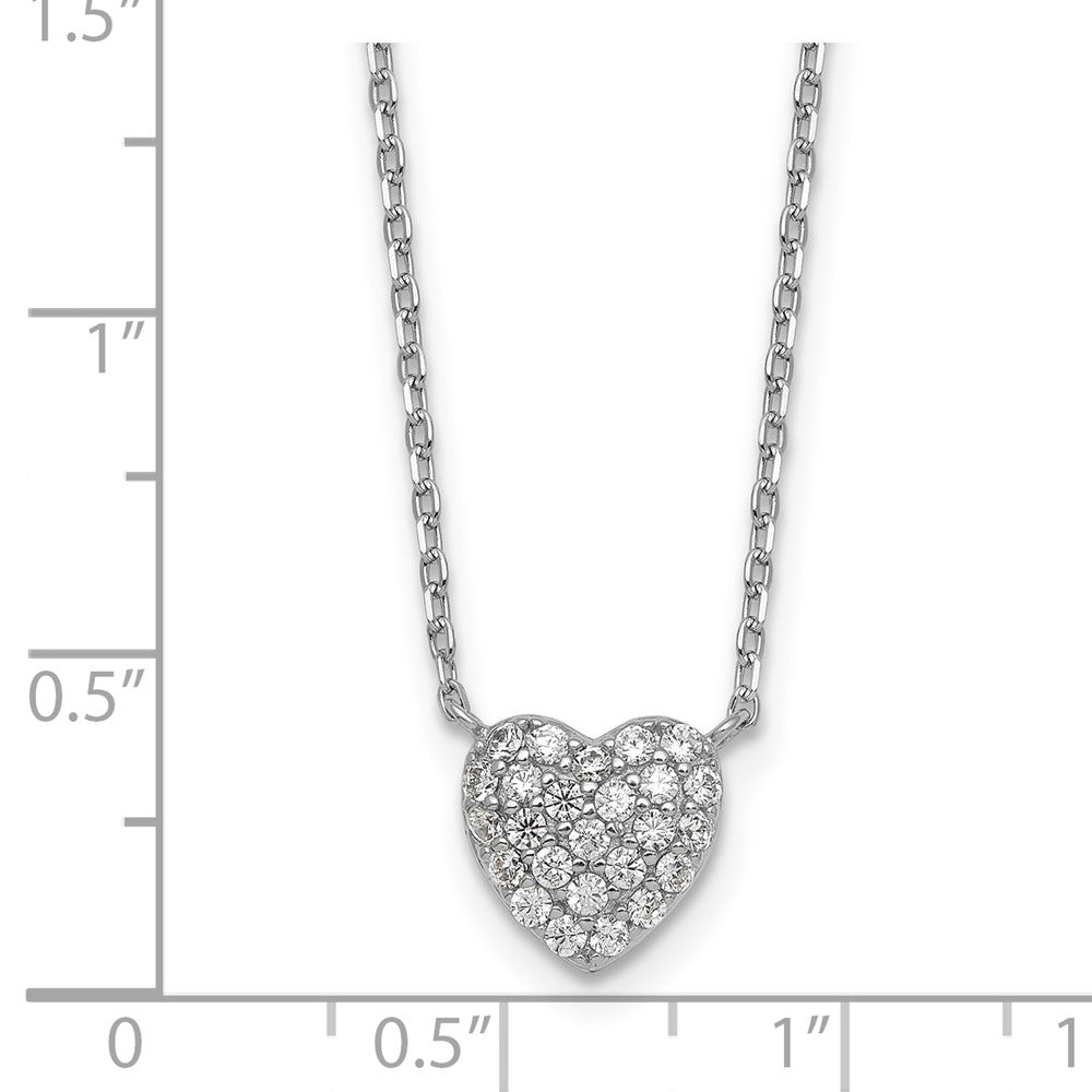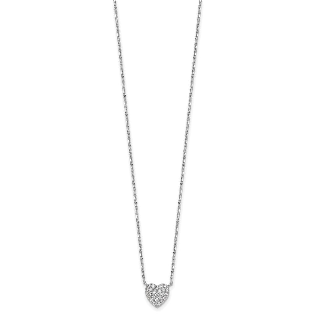 Sterling Silver Rhodium-plated Polished Pave CZ Heart with Extension Necklace
