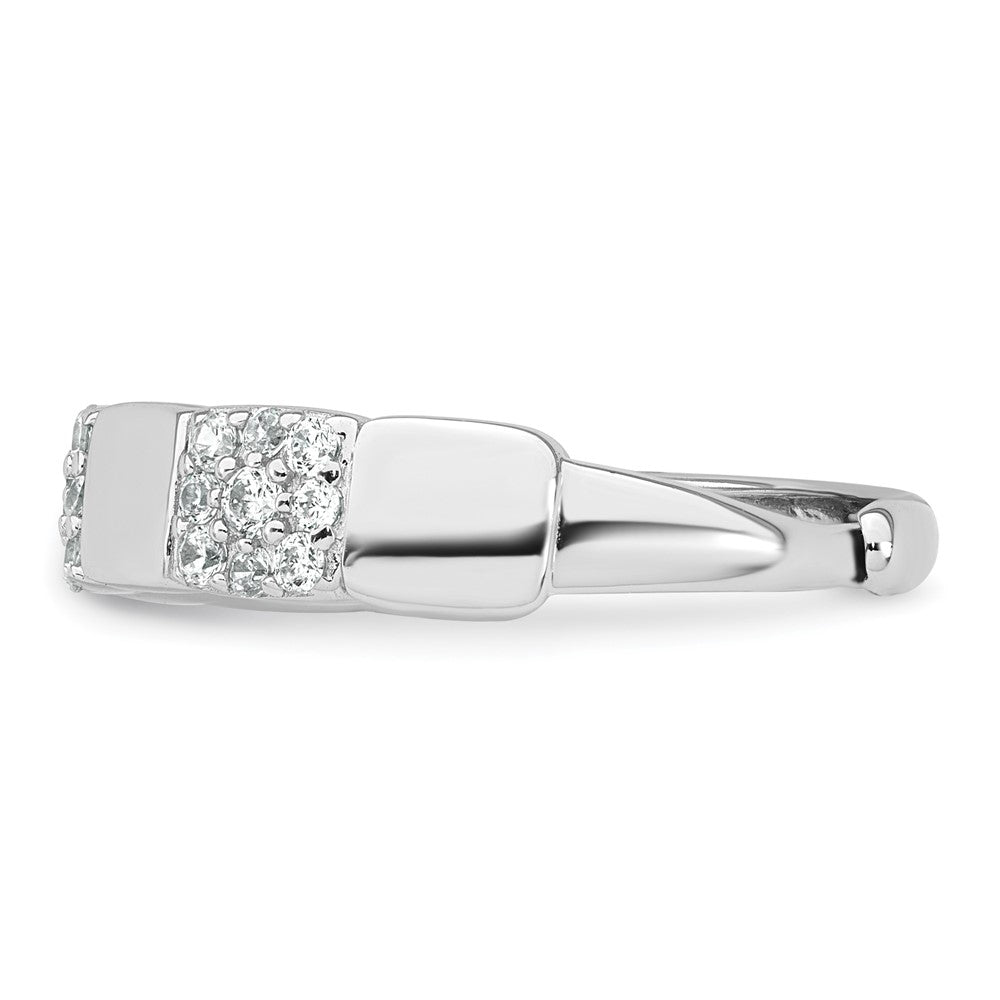 Sterling Silver Rhodium-plated Polished Pave CZ Squares Size 6 Adjustable Ring