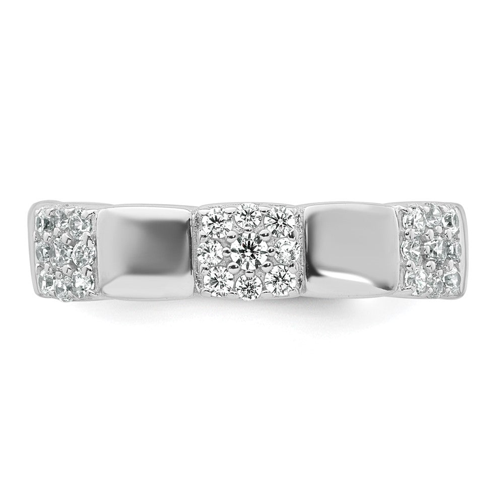 Sterling Silver Rhodium-plated Polished Pave CZ Squares Size 8 Adjustable Ring