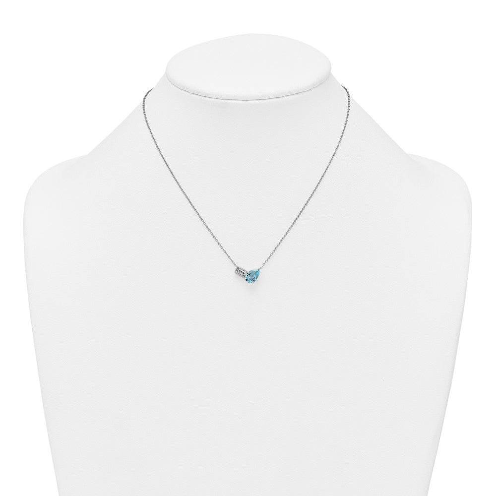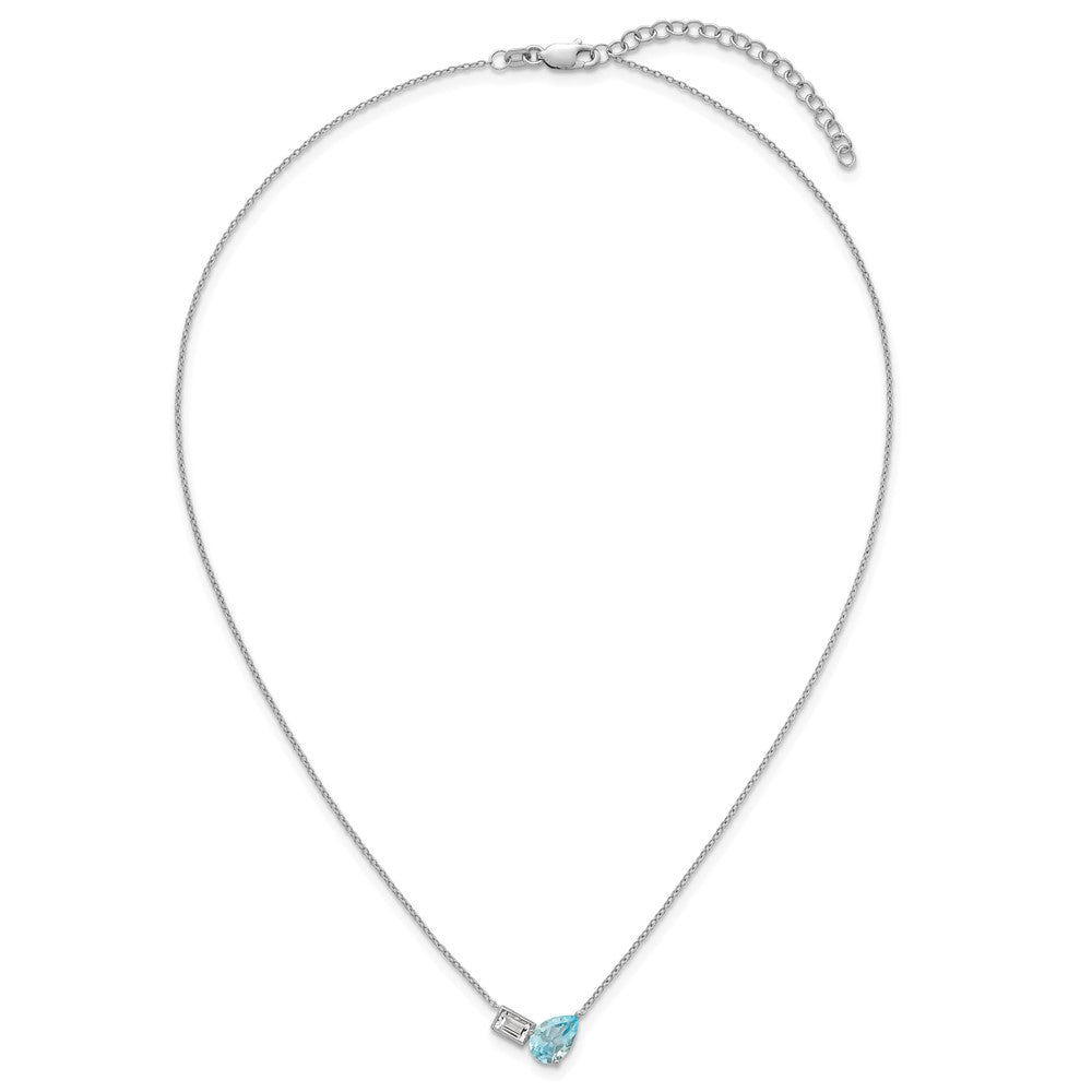 Sterling Silver Rhodium-plated Polished Pear Sky Blue and Emerald-cut White Topaz with Extension Necklace