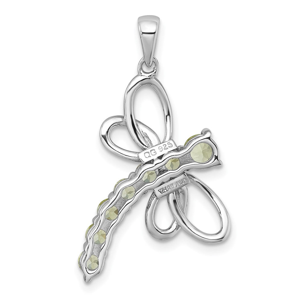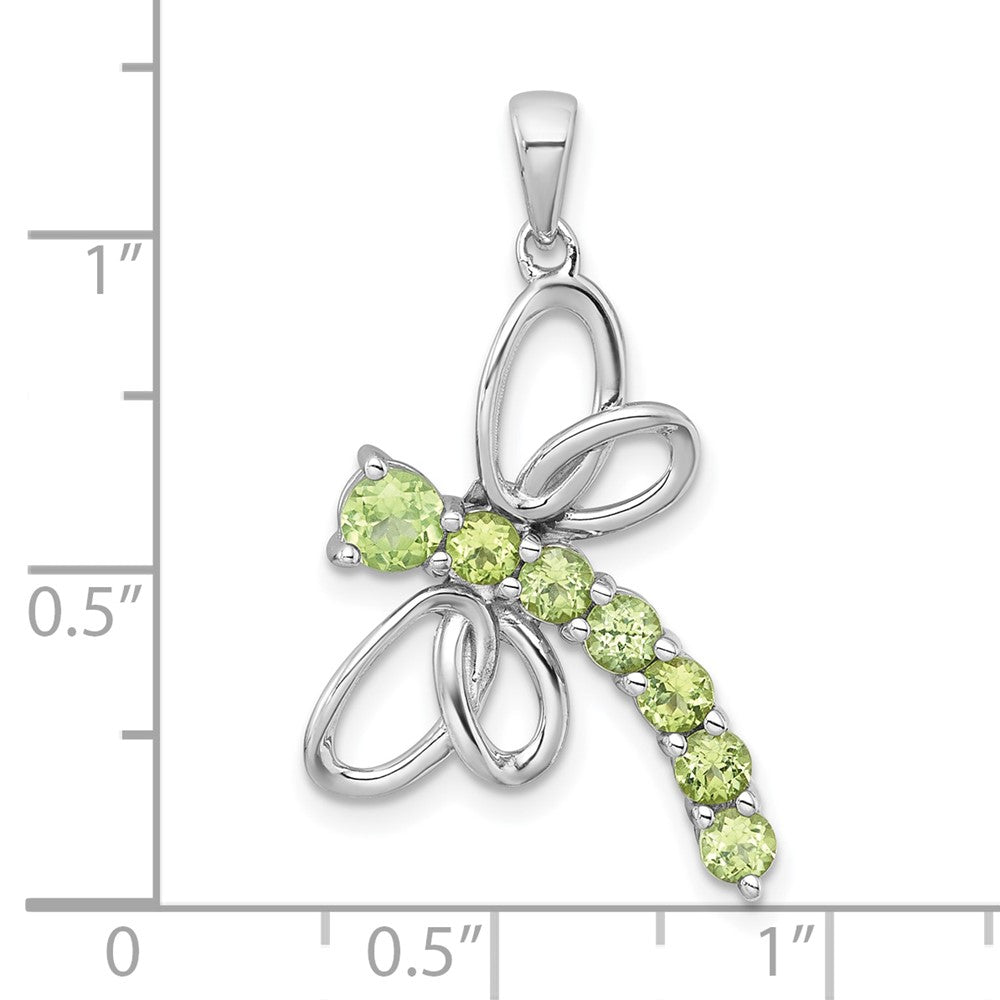 Sterling Silver Rhodium-plated Polished Peridot Dragonfly Pendant