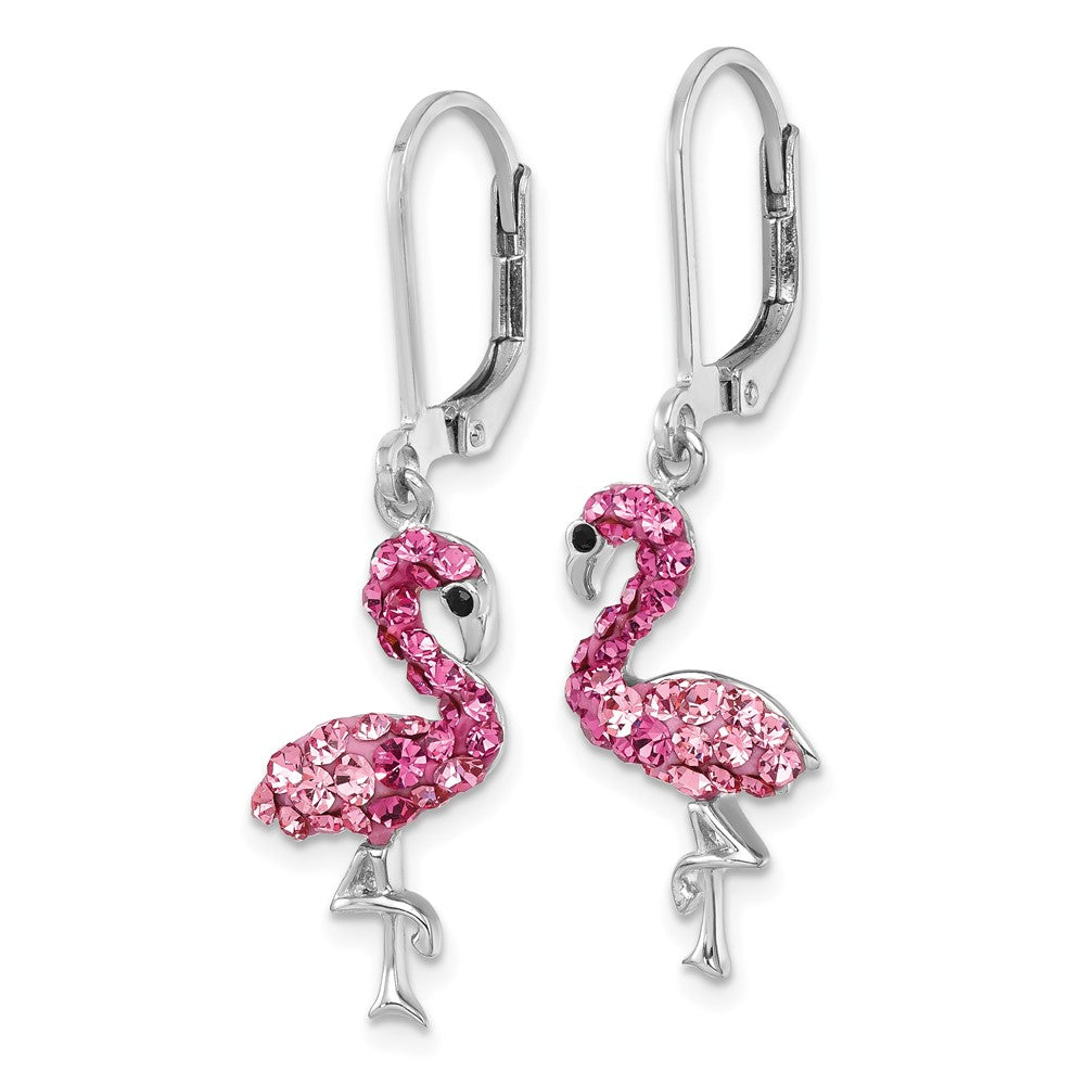 Sterling Silver Rhodium-plated Polished Pink Crystal Flamingo Leverback Earrings