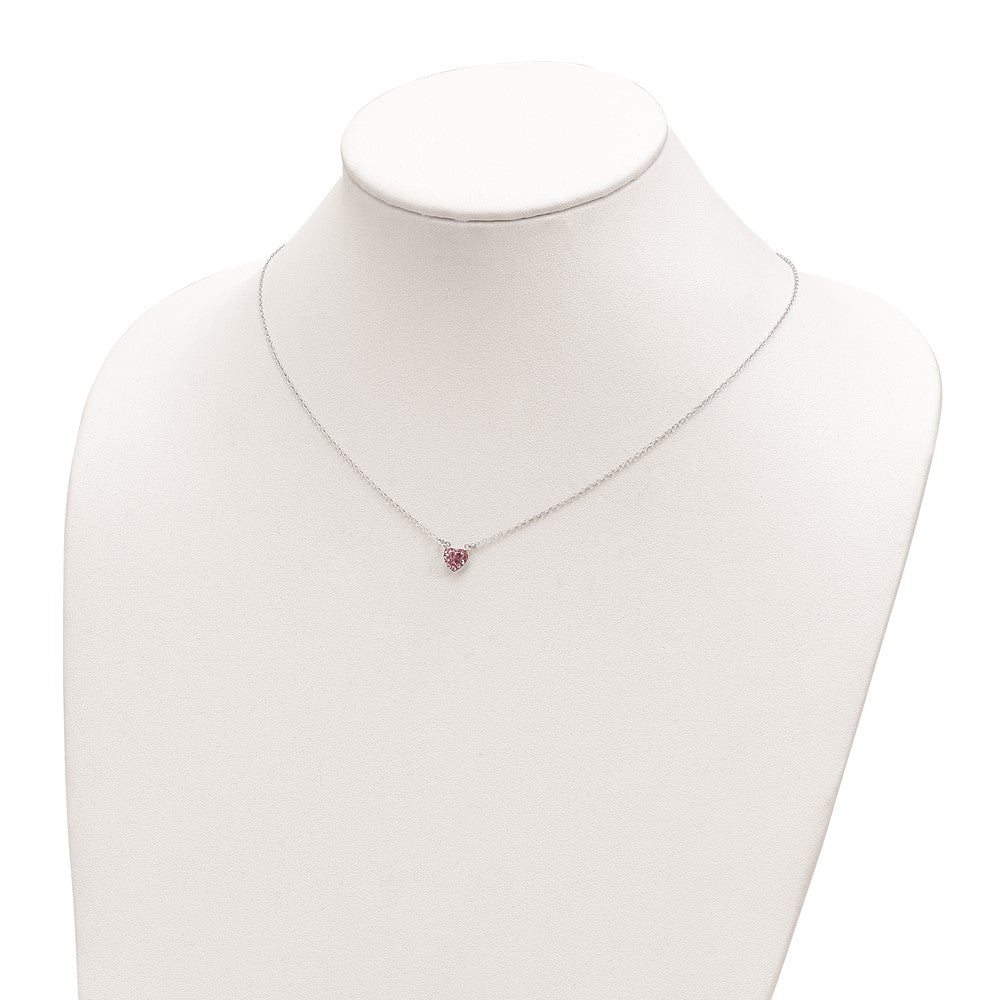 Sterling Silver Rhodium-plated Polished Pink Crystal Heart Necklace
