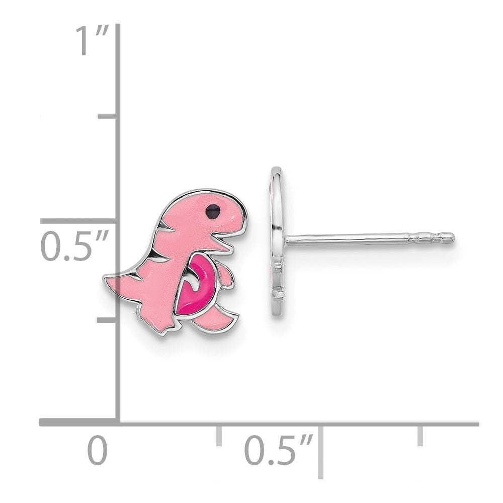 Sterling Silver Rhodium-plated Polished Pink Enamel Dinosaur Children's Post Earrings