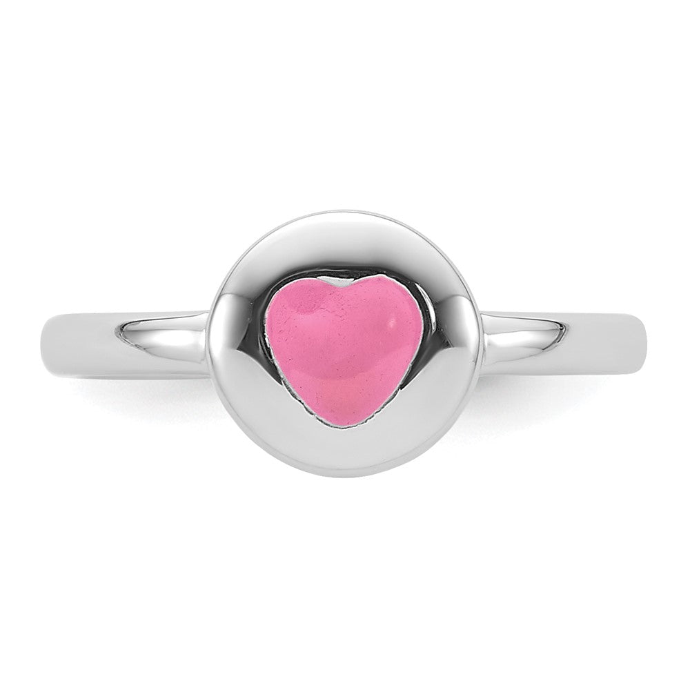 Sterling Silver Rhodium-plated Polished Pink Enamel Heart Children's Ring