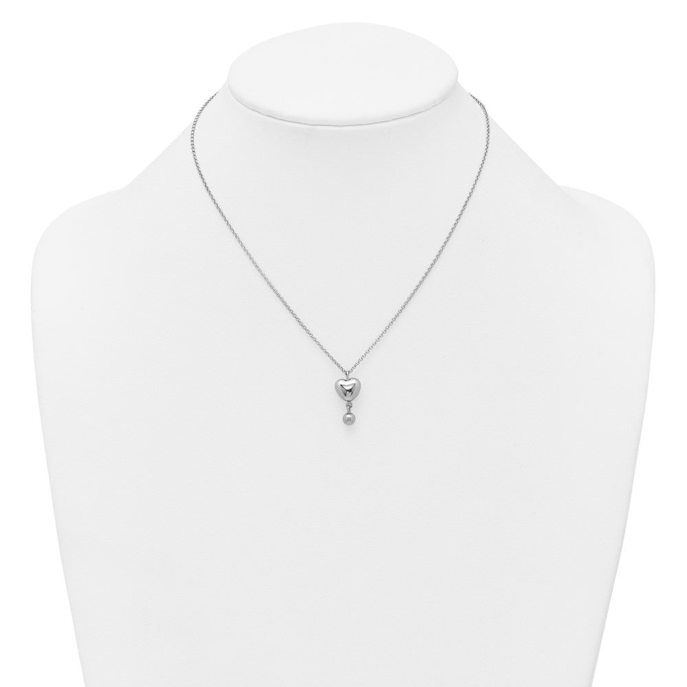 Sterling Silver Rhodium-plated Polished Puffed Heart and Ball Dangle with Extender Necklace