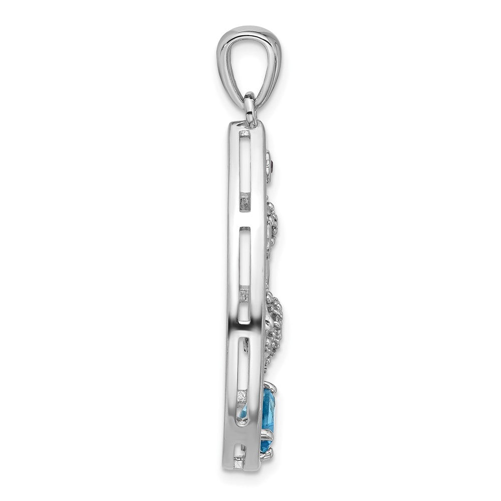 Sterling Silver Rhodium-plated Polished Rainbow Multi-Gemstone Starfish Pendant
