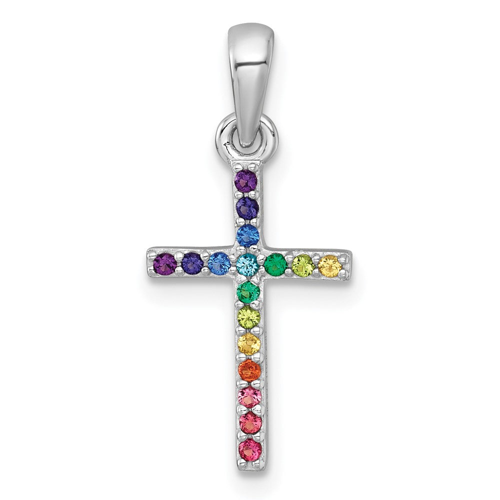 Sterling Silver Rhodium-plated Polished Rainbow Nano Crystals Childrens Cross Pendant