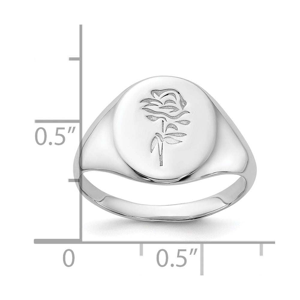 Sterling Silver Rhodium-plated Polished Rose Signet Ring