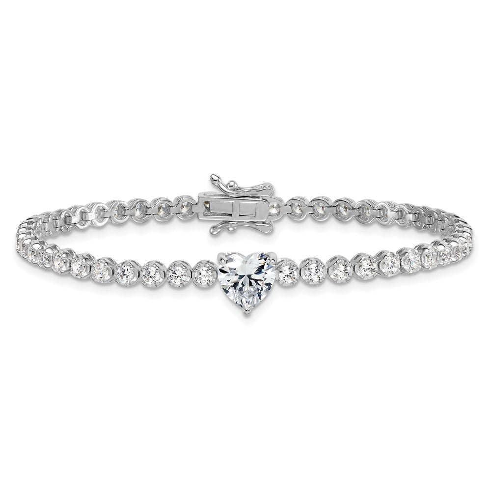 Sterling Silver Rhodium-plated Polished Round and Heart CZ 7. Bracelet