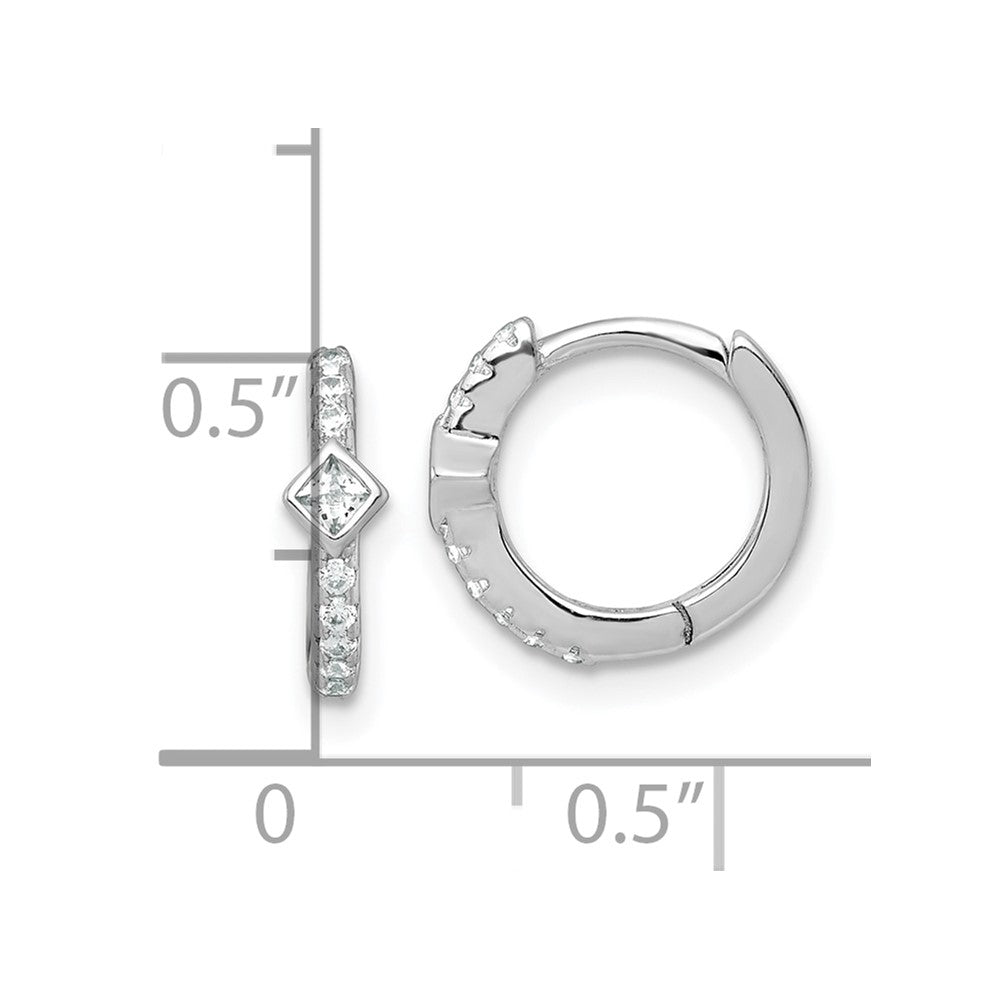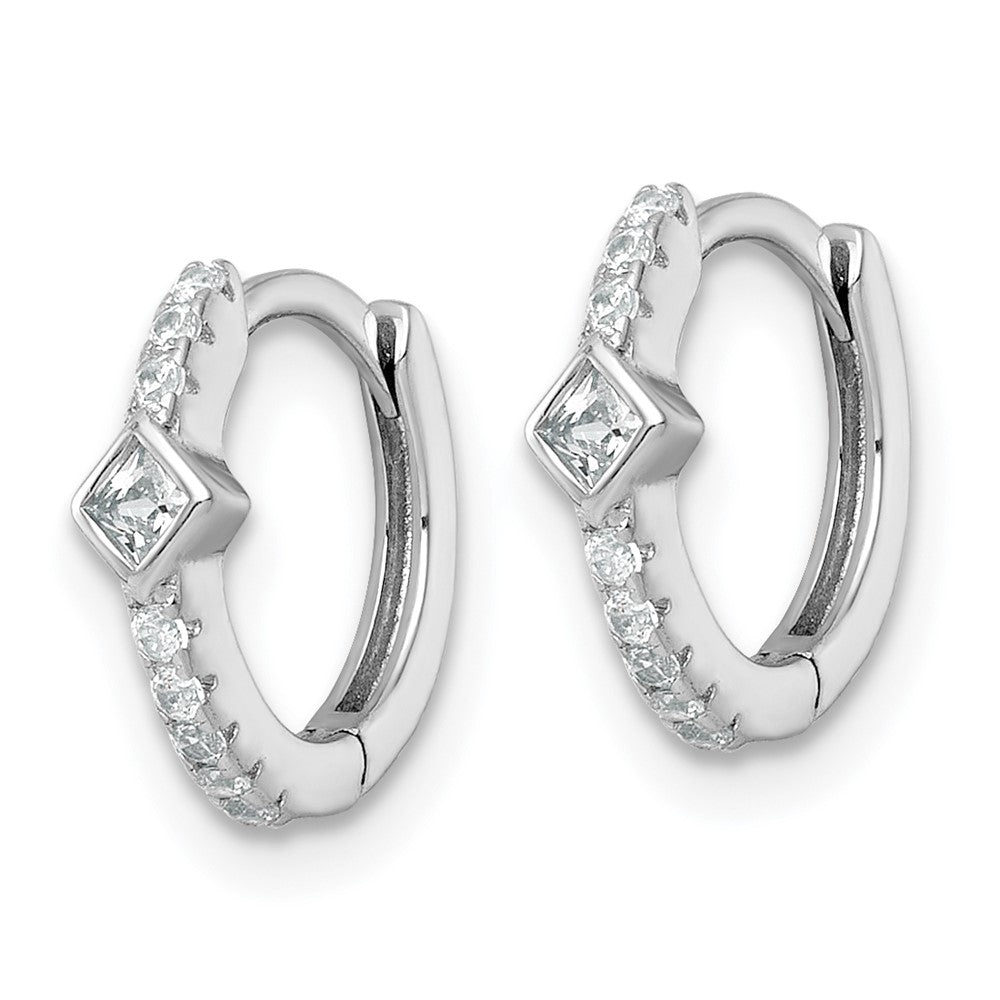 Sterling Silver Rhodium-plated Polished Round and Square CZ Round Hinged Hoop Earrings