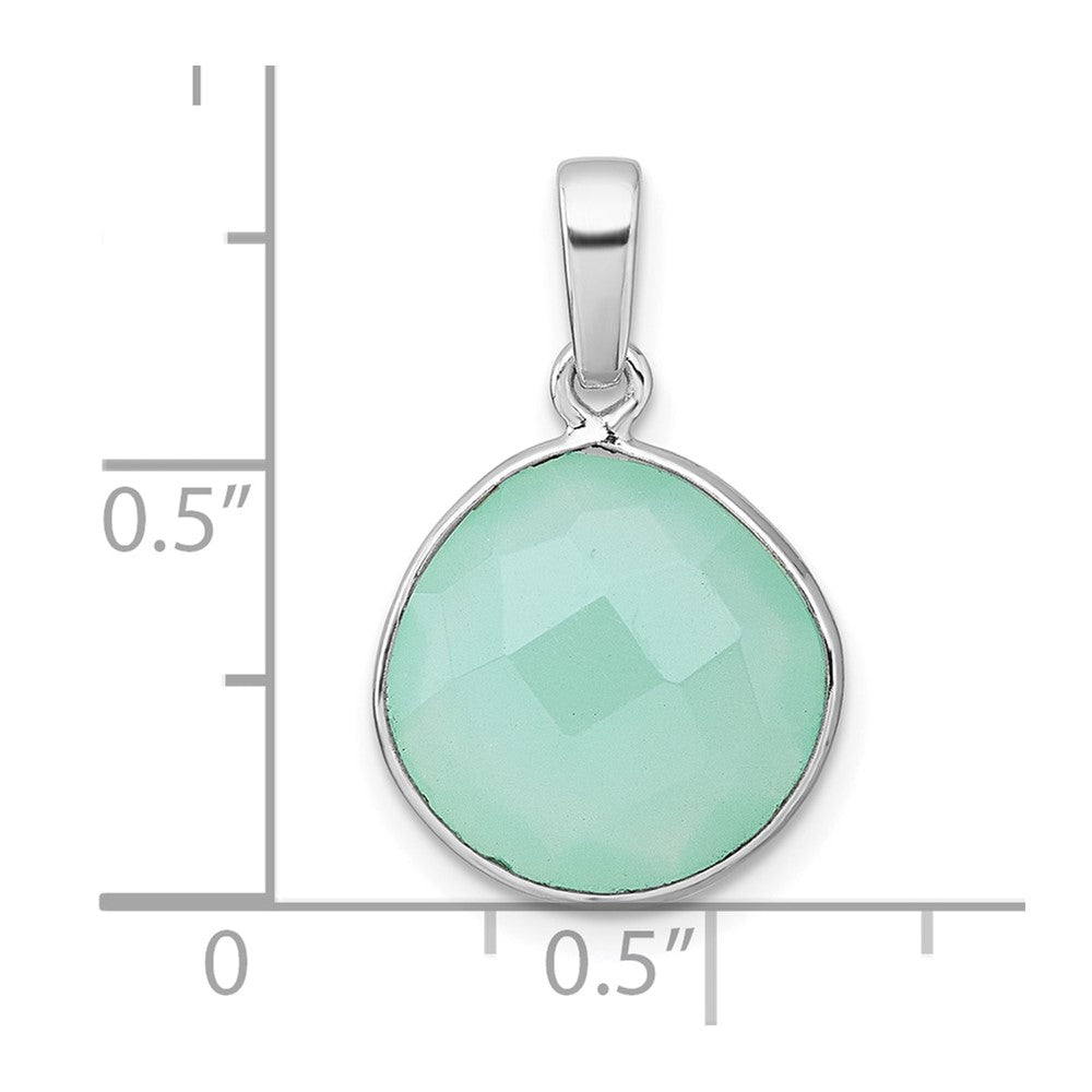 Sterling Silver Rhodium-plated Polished Round Checker-cut Green Chalcedony Pendant