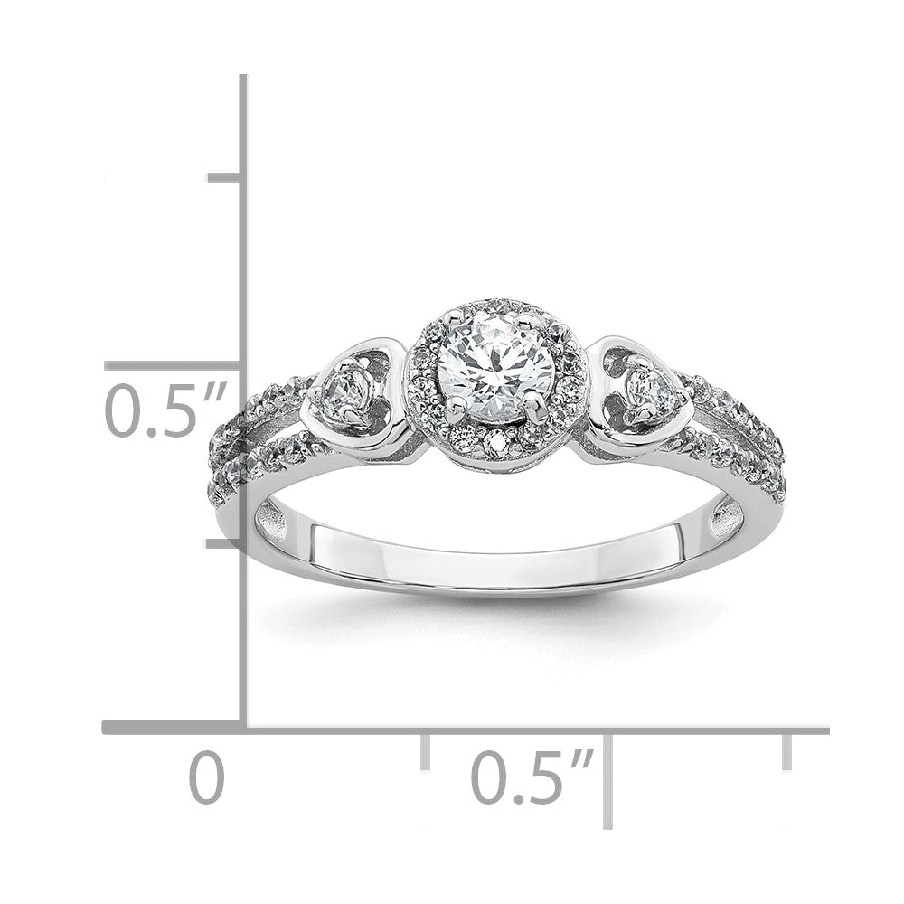 Sterling Silver Rhodium-plated Polished Round CZ Halo Double Side Heart Split Shank Size 7 Ring