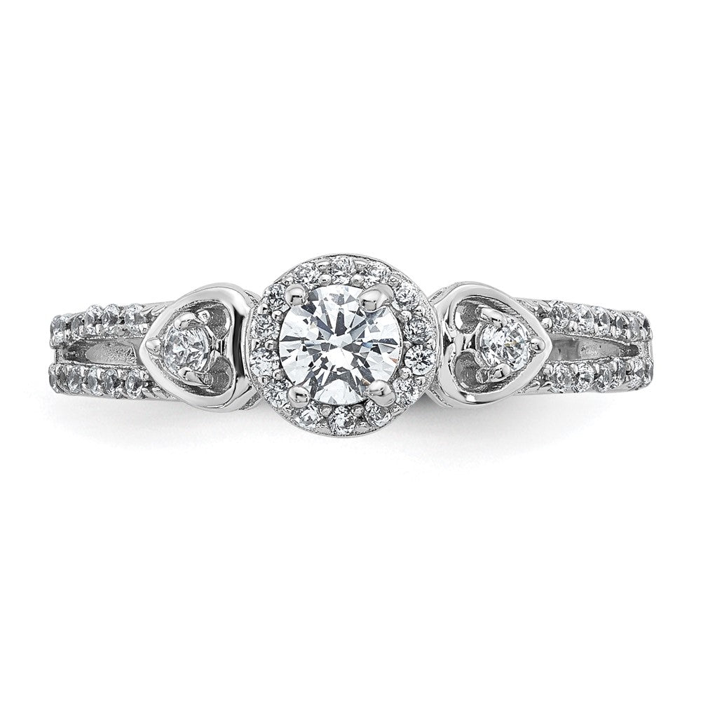 Sterling Silver Rhodium-plated Polished Round CZ Halo Double Side Heart Split Shank Size 8 Ring