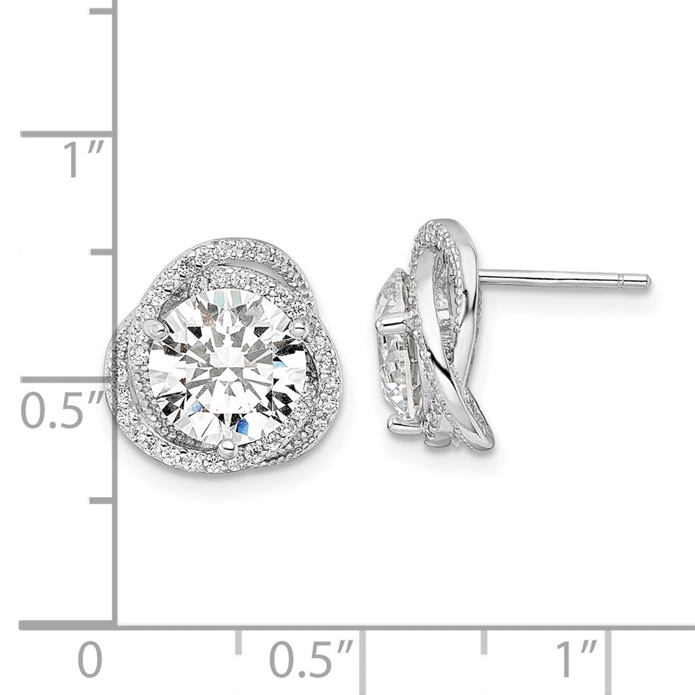 Sterling Silver Rhodium-plated Polished Round CZ Post Earrings